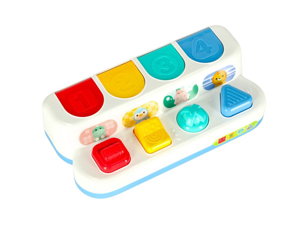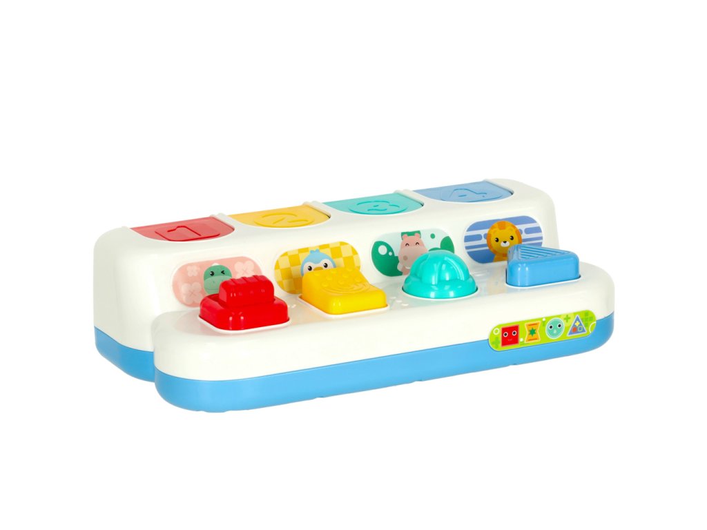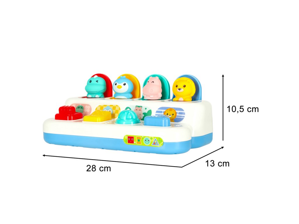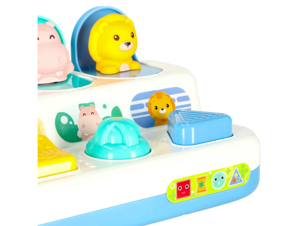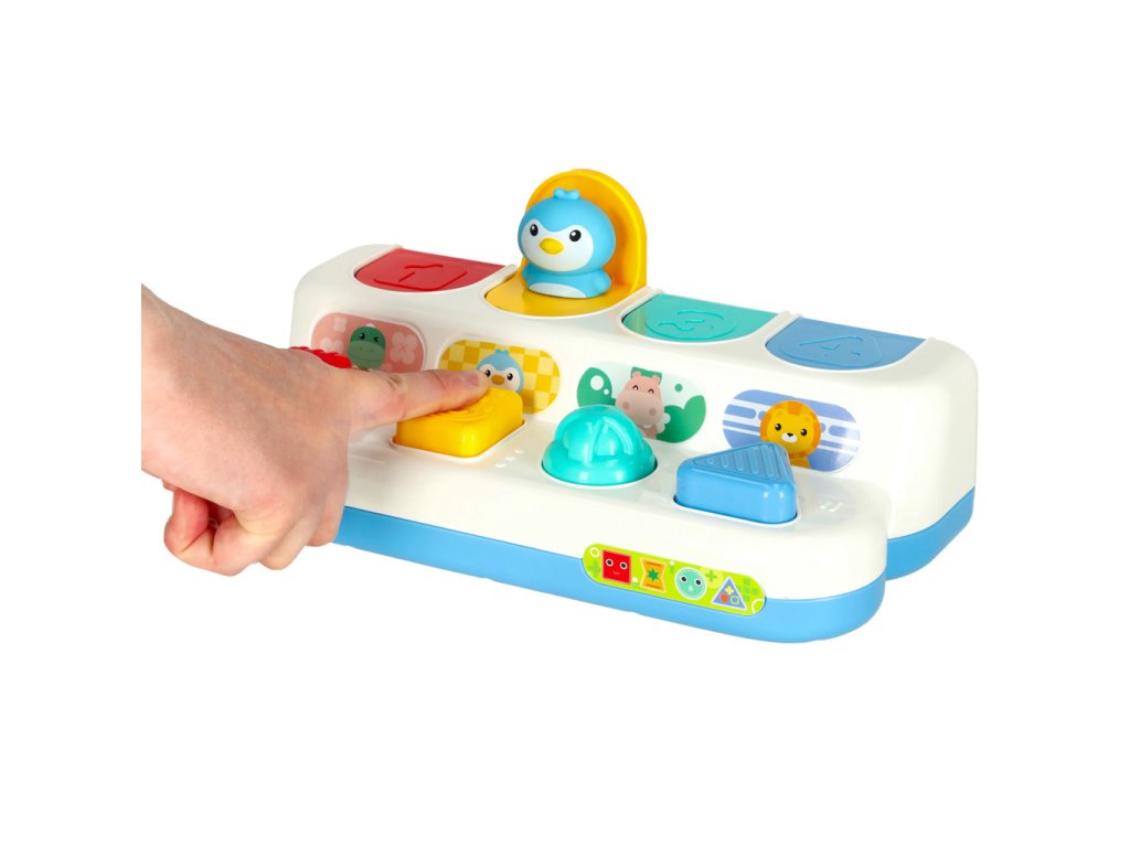 Hračka má čtyři interaktivní tlačítka, které musí batole zmáčknout, otočit nebo pohnout, aby se mu objevily před očima barevná zvířata . Během hry vaše batole rozvíjí jeho drobnou motoriku při procvičování logického myšlení, včetně uvažování o příčinách a důsledcích .