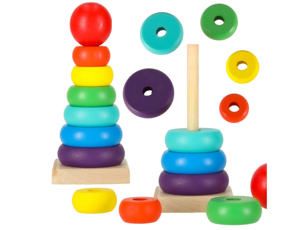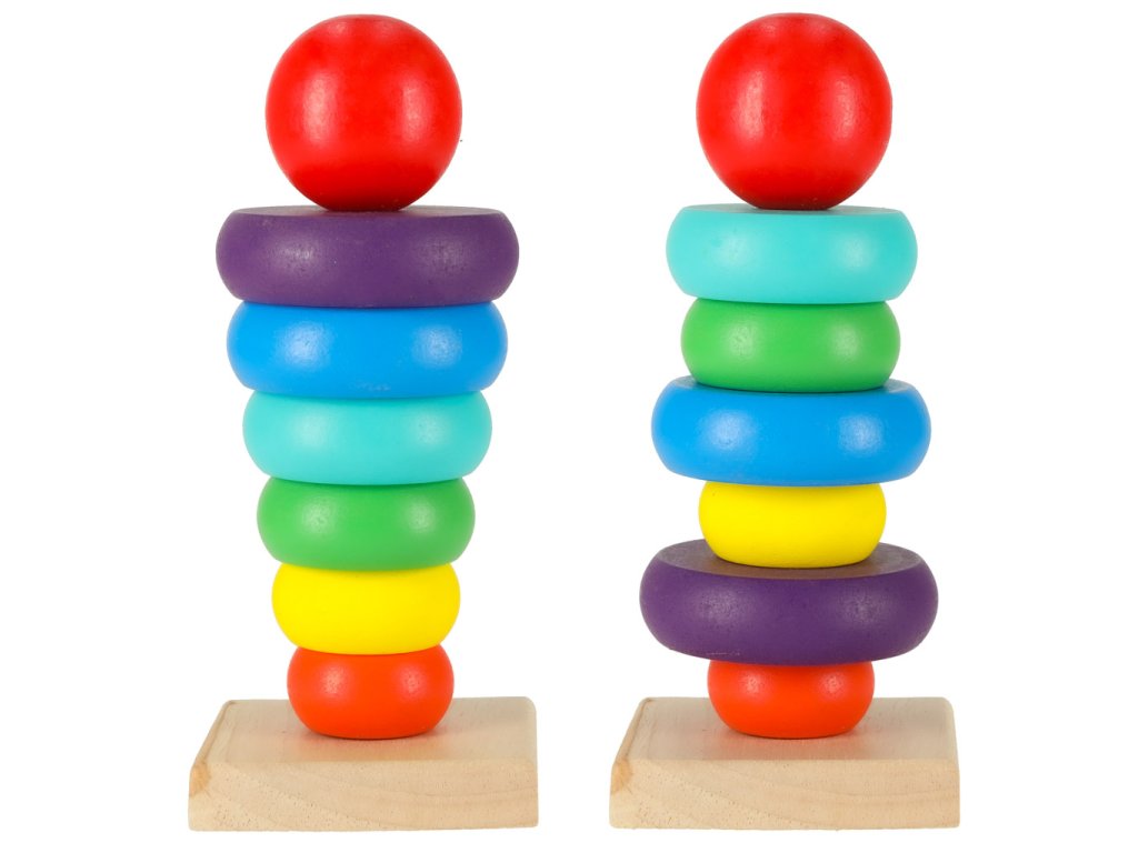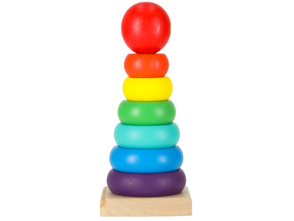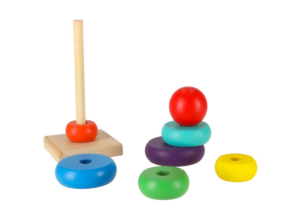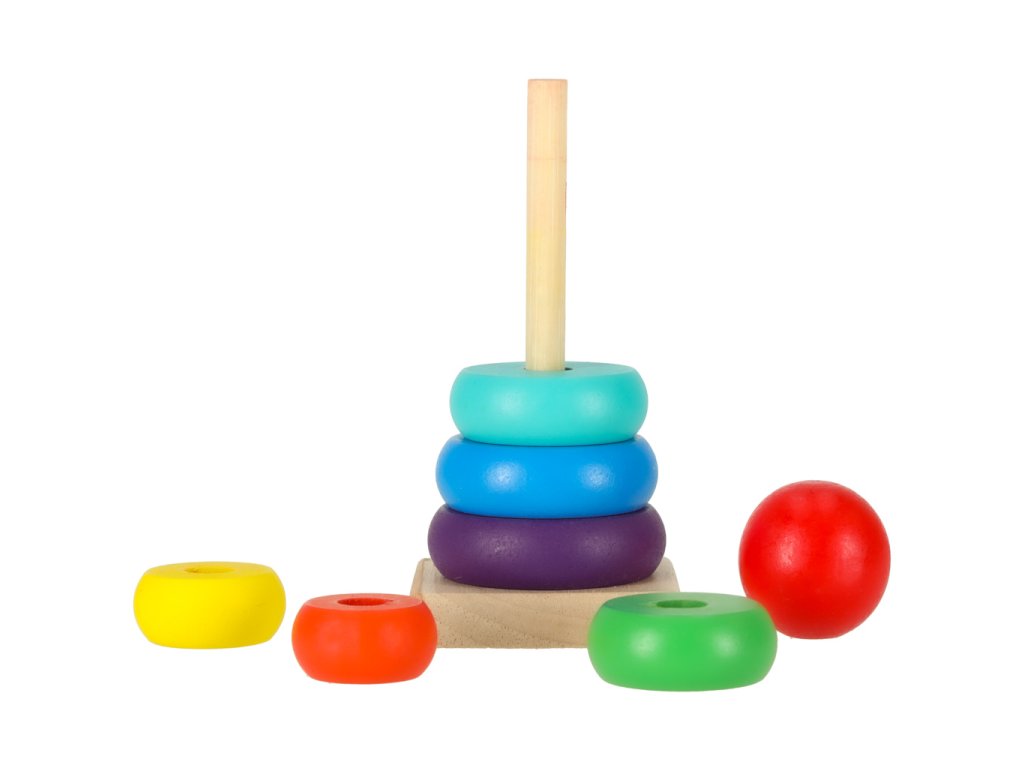 Barevná dřevěná pyramida - první třídička vašeho dítěte.
