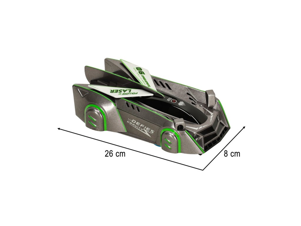 RC laserem řízené auto jezdící po stěně na laserové šedi