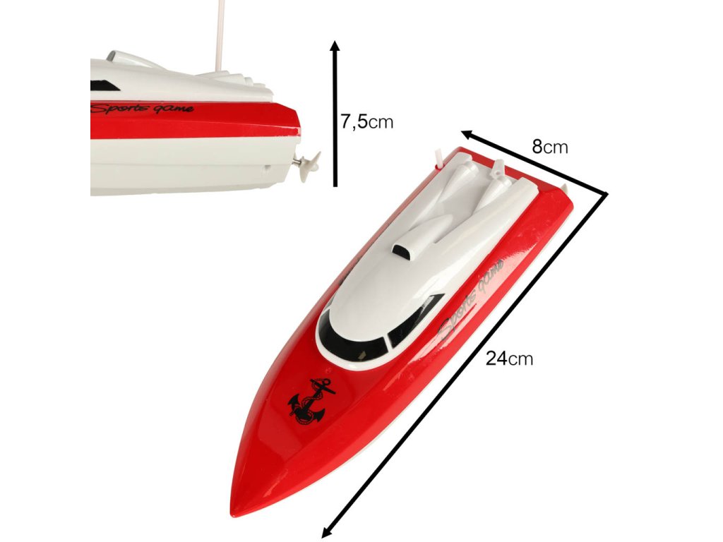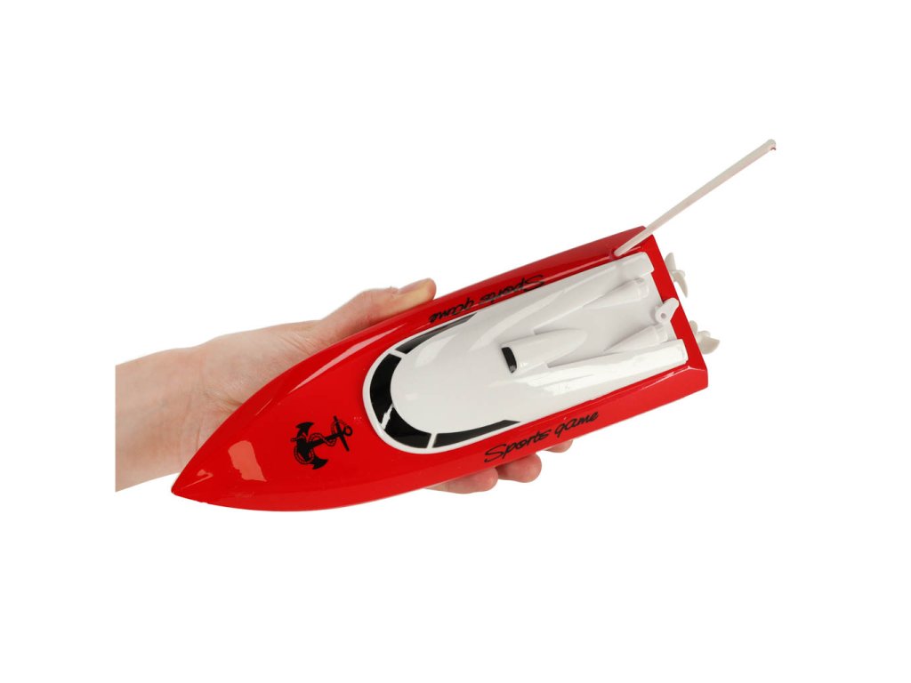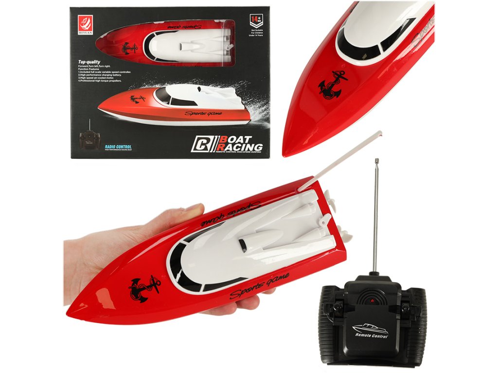Závodní člun na dálkové ovládání je ideální hračkou pro milovníky námořních dobrodružství. Motorový člun je napájen dobíjecím akumulátorem Ni-Cd 3,6 V 500 mAh. Ovladatelný model je vyroben z robustního materiálu.