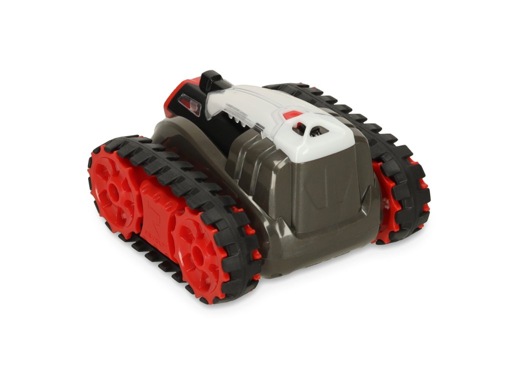 Pásový podvozek zajišťuje plynulý pohyb na jakémkoli povrchu a navíc nepoškrábe podlahu. Dva rychlostní režimy umožňují přizpůsobit rychlost vlastním schopnostem ovládání. LED diody na bocích nádrží signalizují, kdy jsou připraveny k palbě.