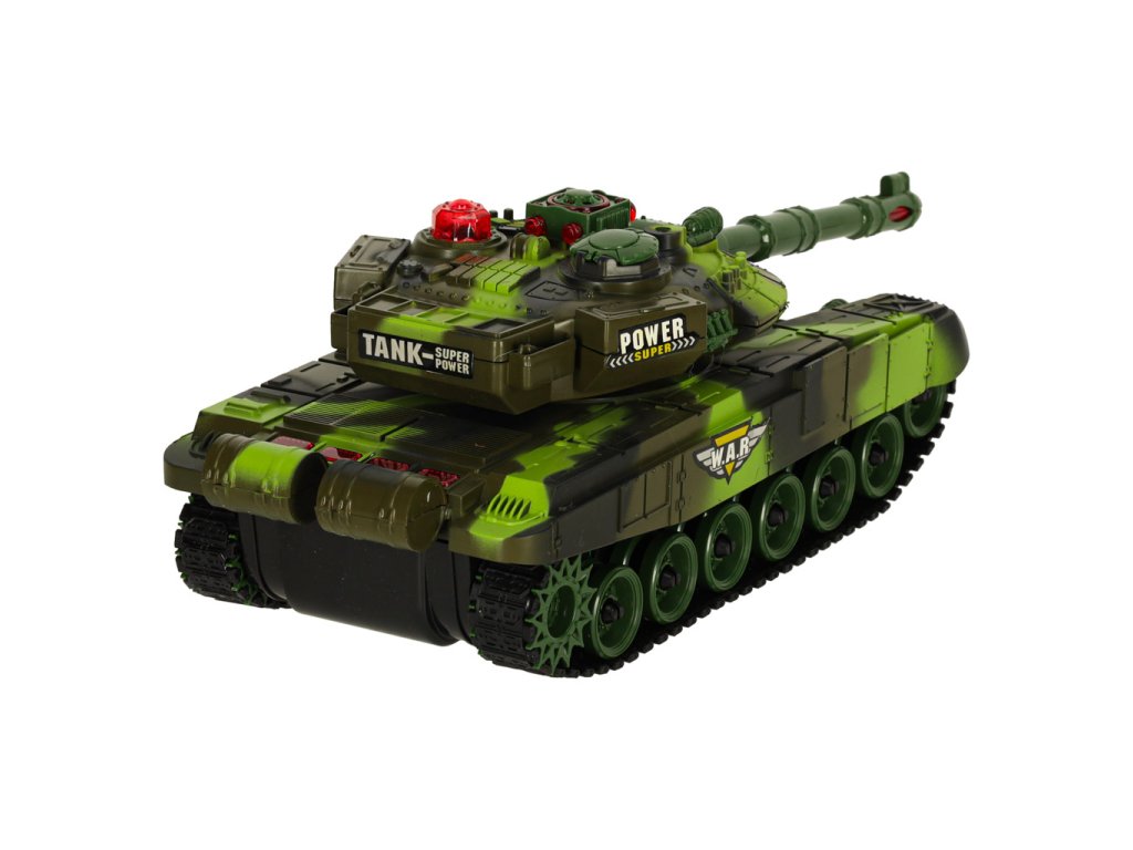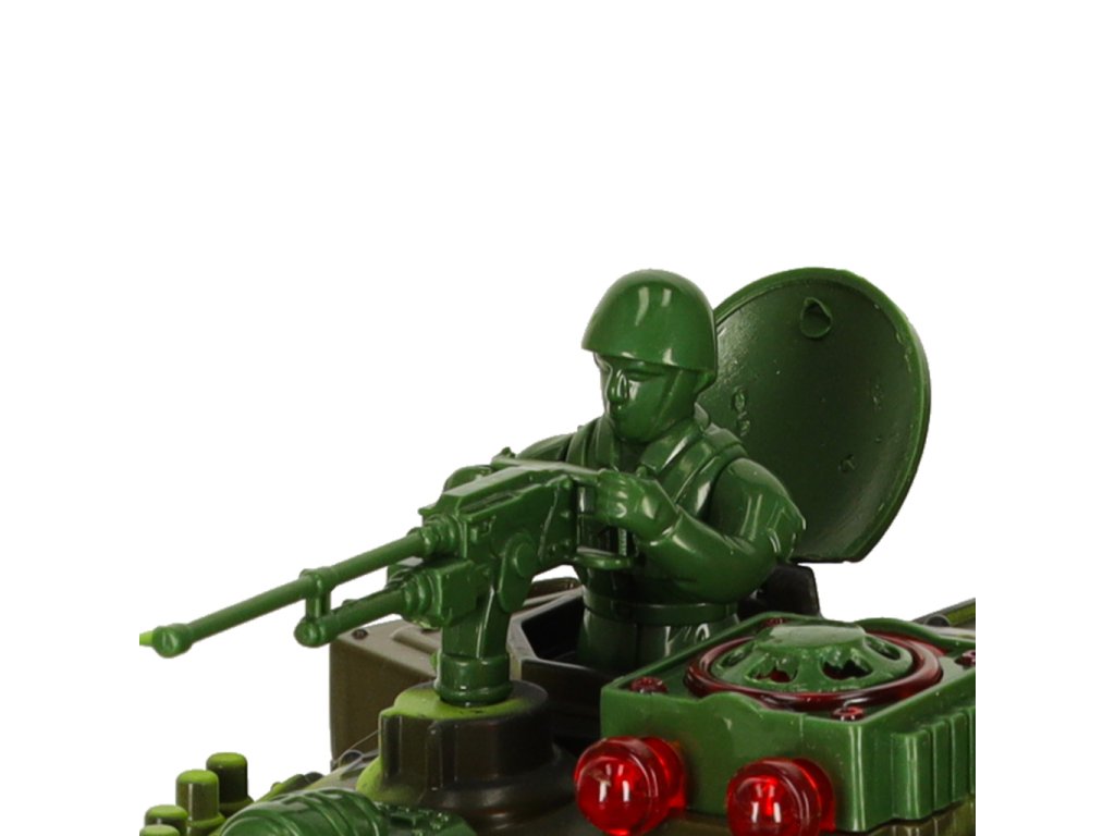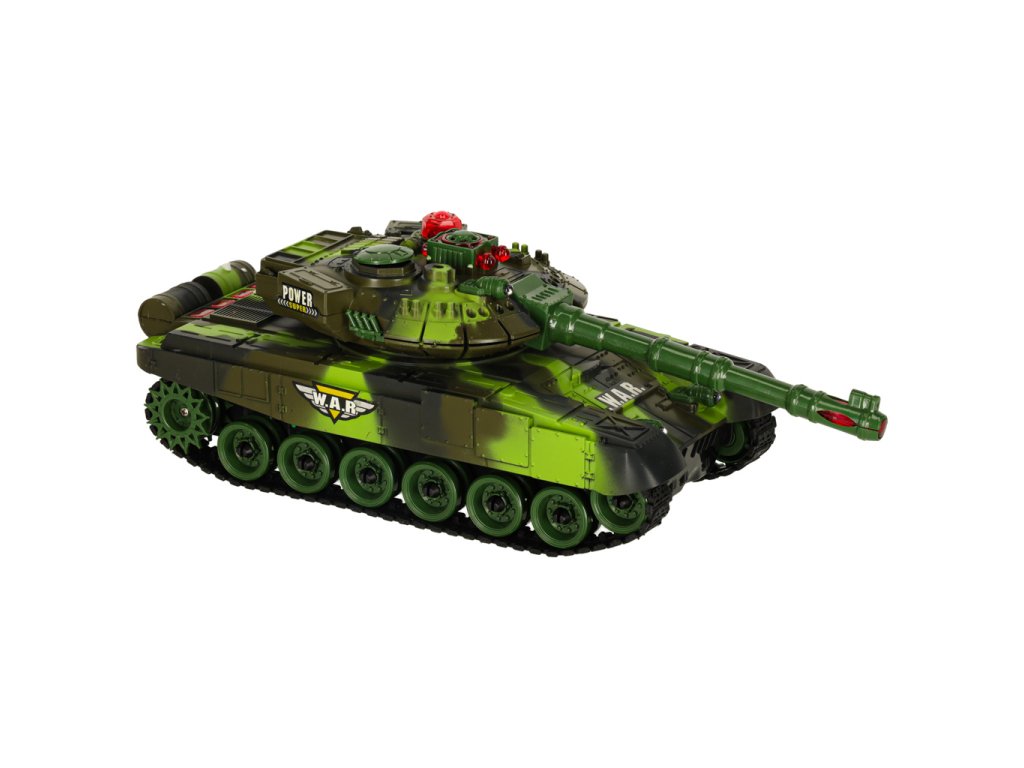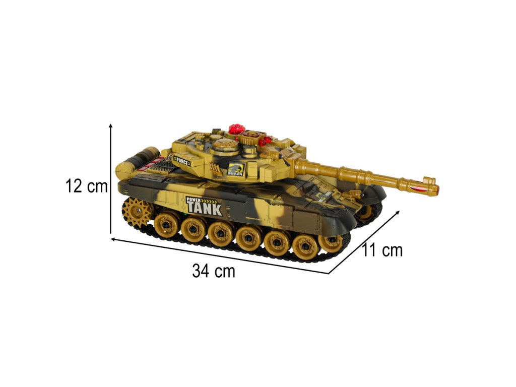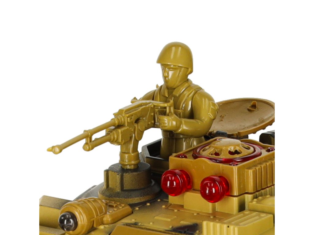 Jak se na skutečný tank sluší, je vybaven pásovým podvozkem na měkkých gumových pásech, které zajišťují dobrou přilnavost. Otočná věž se může otáčet o 300 stupňů, což je vlastně široký palebný úhel. Tank je vybaven výrazným osvětlením, které v tmavé místnosti vypadá senzačně.
