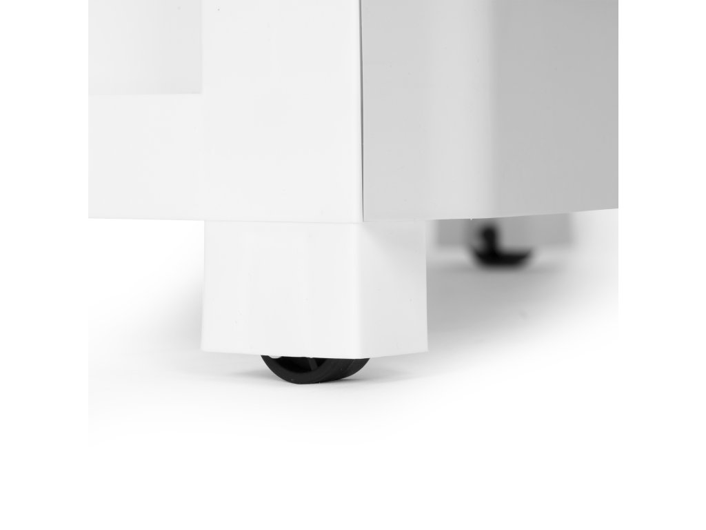 Knihovna na kolečkách je funkční a praktické řešení pro ukládání nejrůznějších předmětů. Nastavení v koupelně pro uložení kosmetiky a další příslušenství, které chcete mít po ruce. Police se hodí také pro v pokoji vašeho dítěte a pomáhají udržovat pořádek mezi hračkami, stavebnicemi a dalšími drobnými předměty. Jednoduchý tvar a univerzální bílo-šedá barva police se hodí do každého typu interiéru.