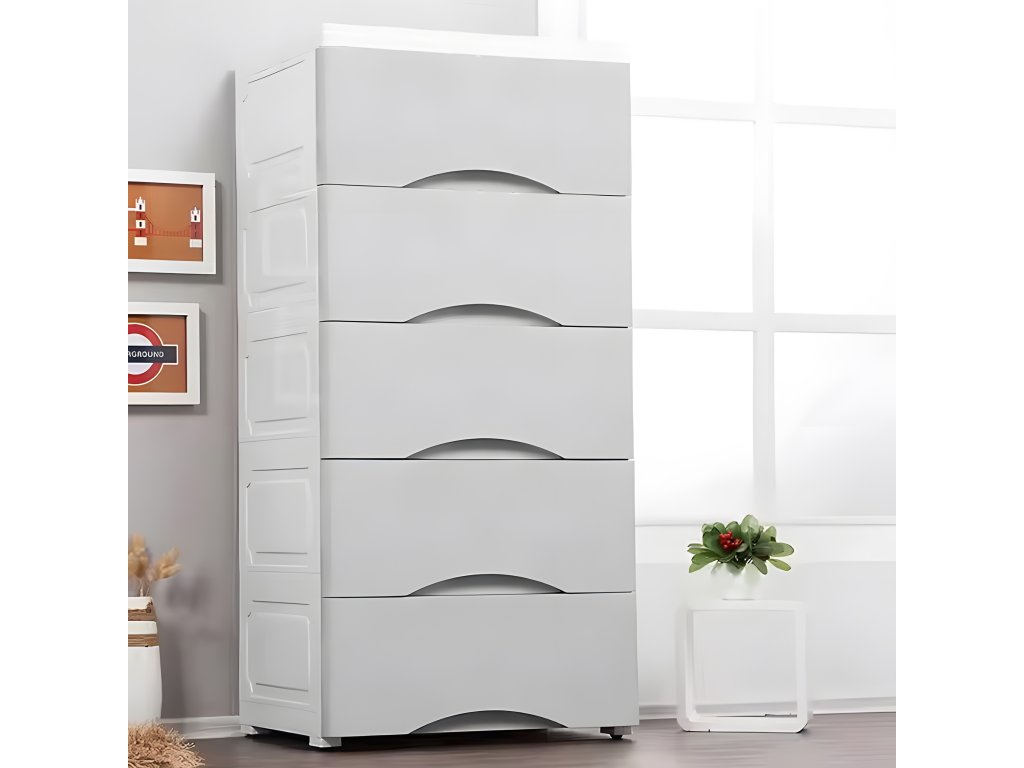 Regál s 5 výsuvnými zásuvkami nohy s kolečky šedé ModernHome