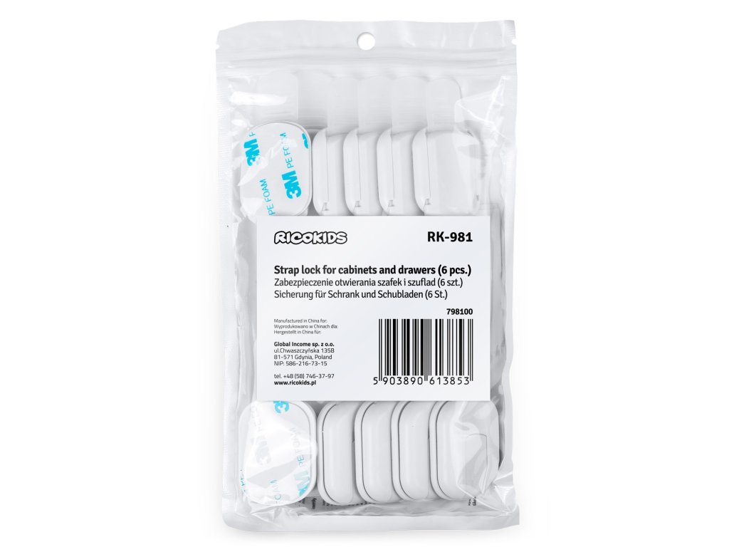 Ricokids bezpečnostní zařízení pro otevírání skříněk 798100 6 ks bílá