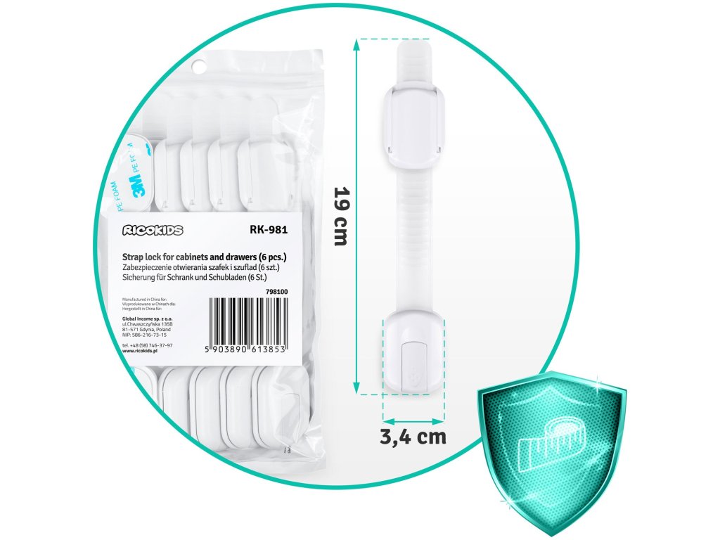 Praktické, malé a estetické bezpečnostní zařízení, které zabrání vašemu dítětináhlé otevření skříně nebo zásuvky.