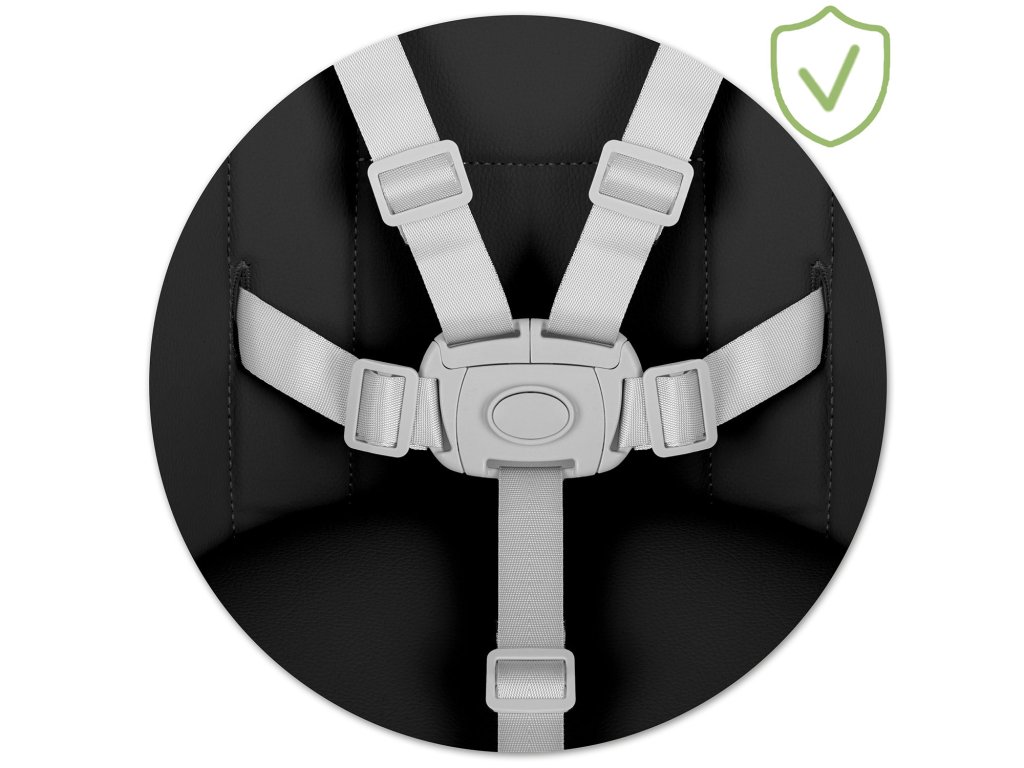 Dodatečné zabezpečení, 5bodové bezpečnostní pásy což neumožní pro samovolné vyloučení dítěte židle. Když už není potřeba, lze ji zcela demontovat.