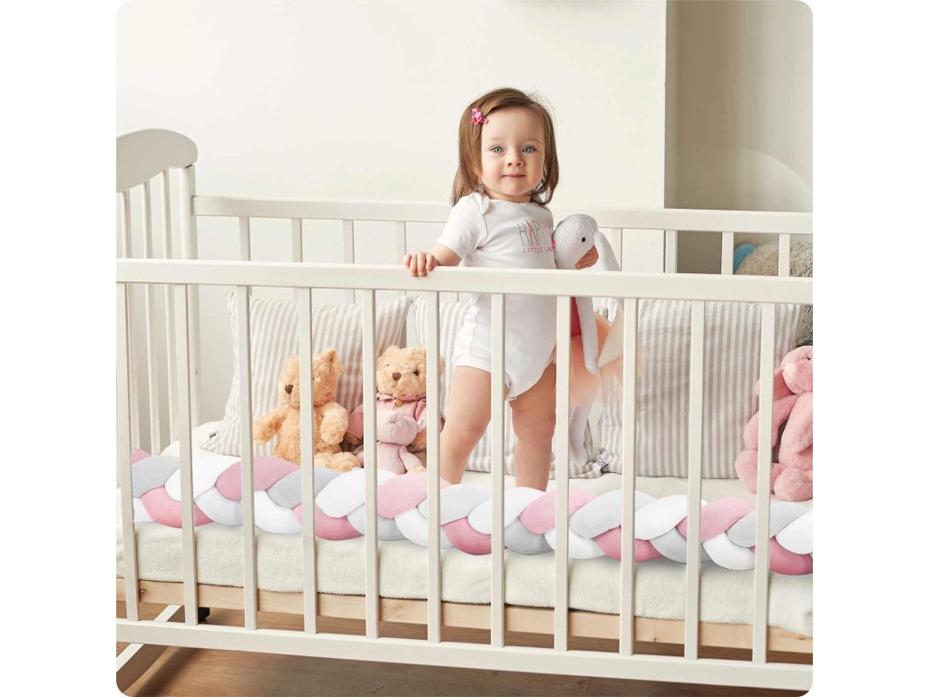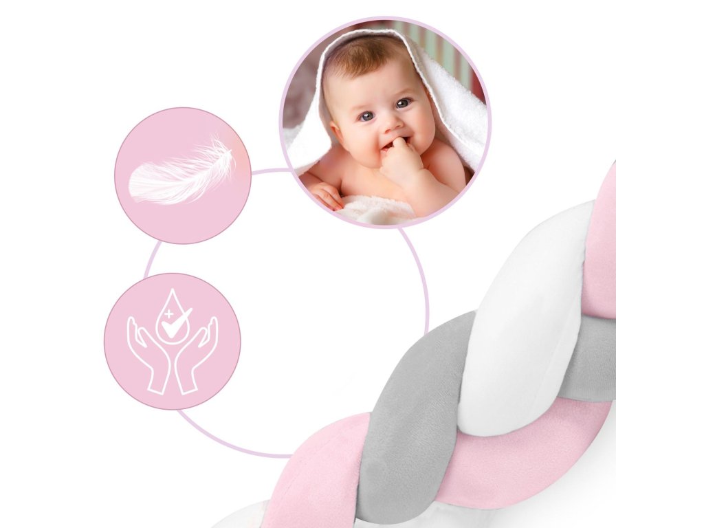 Ricokids nárazník do postýlky 3m - růžový a šedý