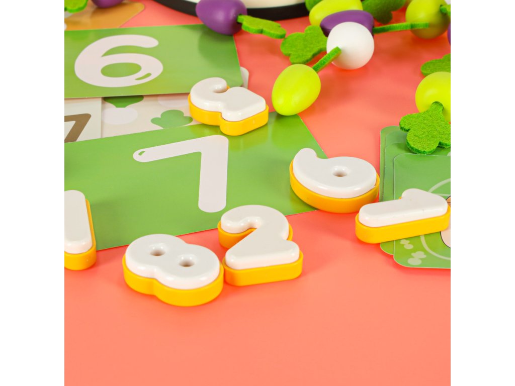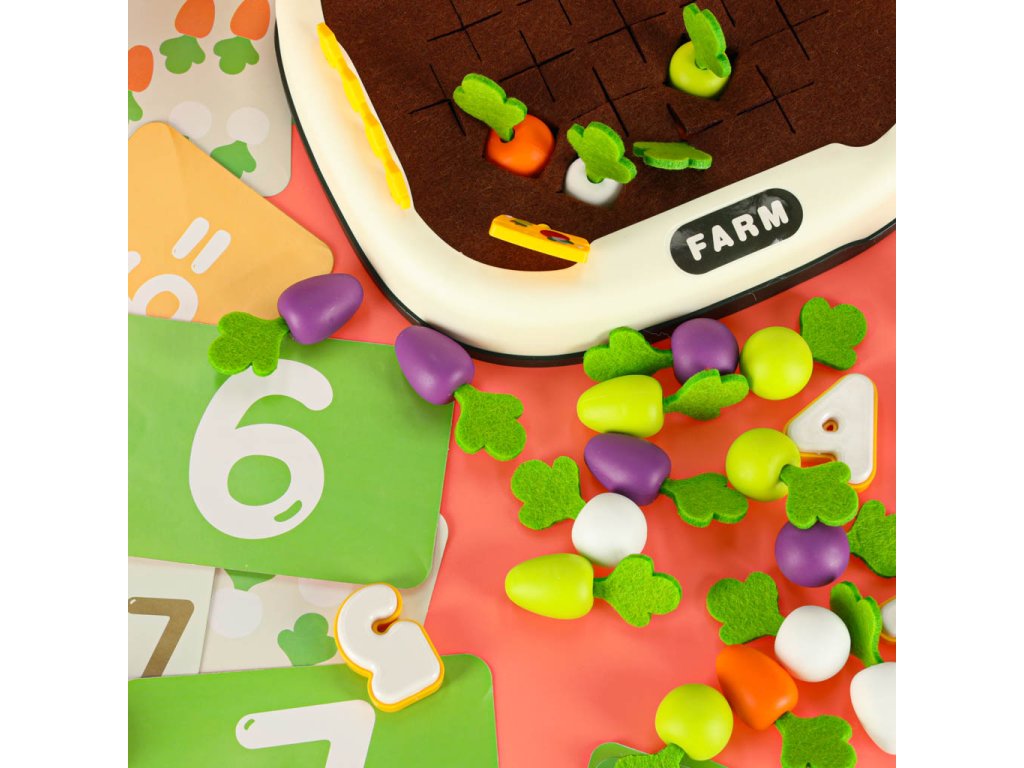 Speciálně navržená deska s otvory umožňuje dětem trénovat přesnost - vkládání a vyjímání mrkve rozvíjí manuální zručnost, zatímco hra "kdo sklidí úrodu rychleji" vnáší do hry nádech zdravé soutěživosti.