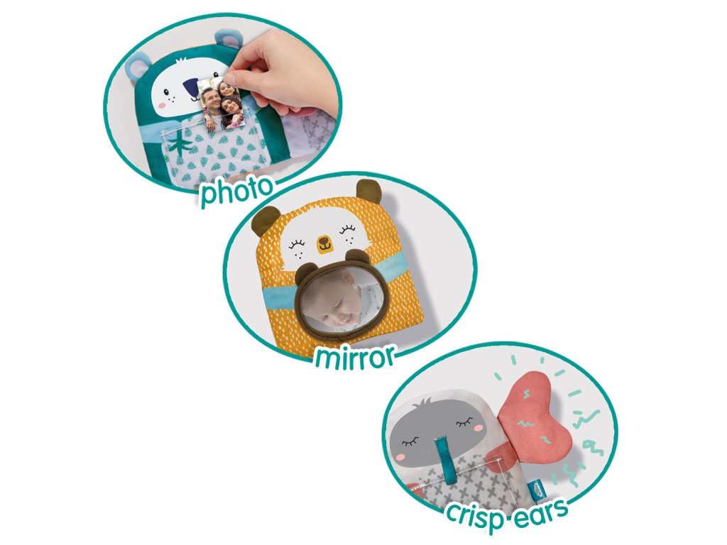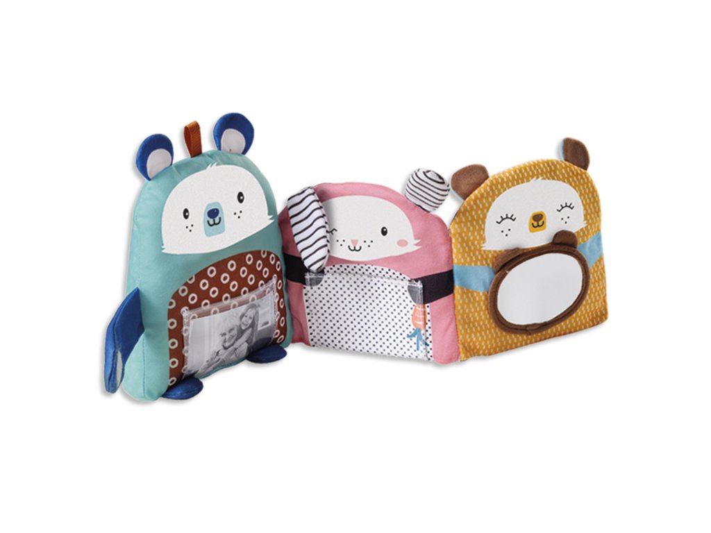 Tato roztomilá a měkká knížka je zároveň plyšovou hračkou i fotoalbem. Když si vaše dítě hraje s knihou, vydává se na cestu objevování. Kniha je plná poutavých barev, smyslových stužek, se kterými si dítě může hrát, a dokonce obsahuje zrcátko a vyskakovací uši. Přidejte rodinné fotografie a zjistěte jména všech členů rodiny spolu s vaším dítětem. Navíc vám bude rodina vždy nablízku! Rodinné fotoalbum na mazlení je proto ideální i jako dárek!