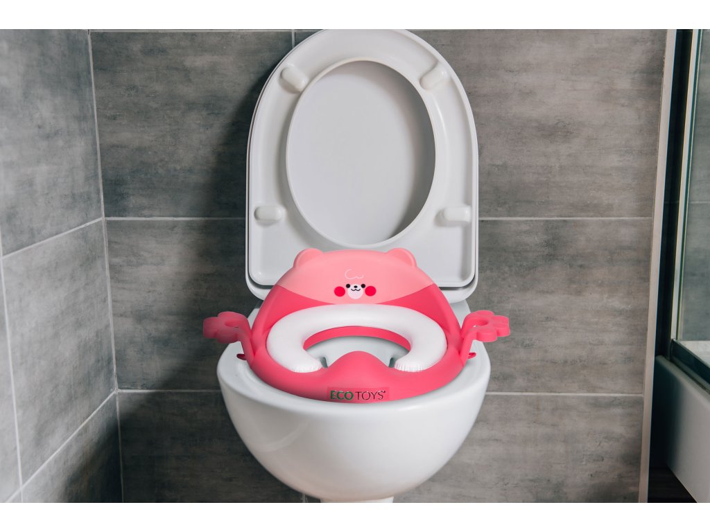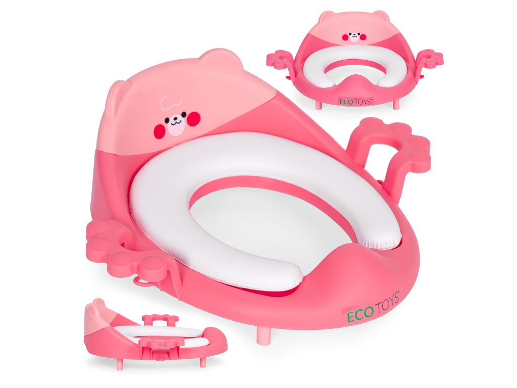 Růžové dětské záchodové prkénko ECOTOYS s polštářkem a držadly