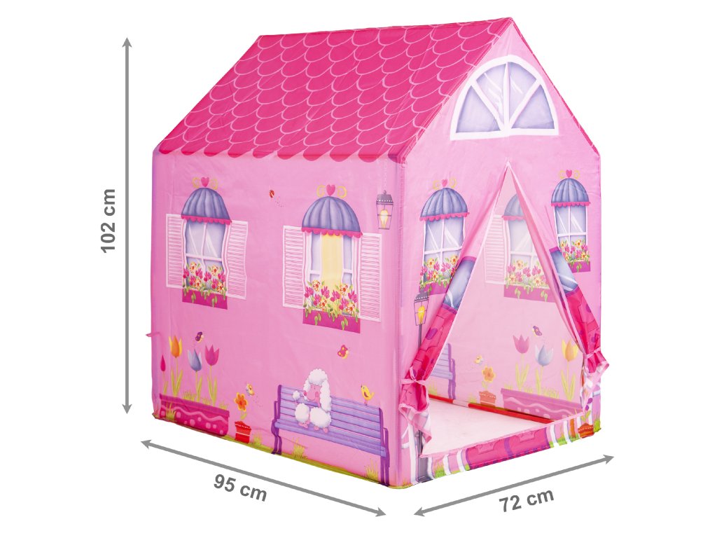 Výrobek má tvar růžový dům - se střechou . Svým charakterem dokonale zapadá do atmosféra dívčího pokoje a bude zábavné hrát mnoho her s přáteli. Stan je praktický a snadno se skládá. Díky lehkému rámu, snadné přenášení z místa na místo.