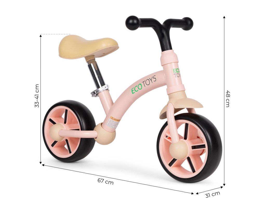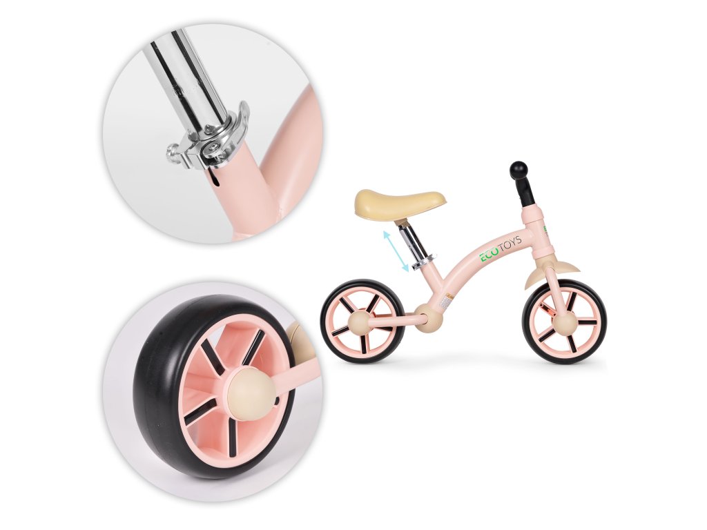 Růžový ECOTOYS, kolečka EVA, nastavitelné sedlo