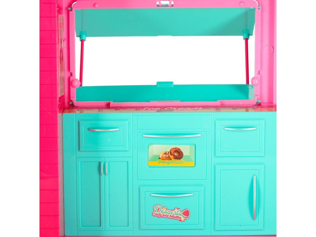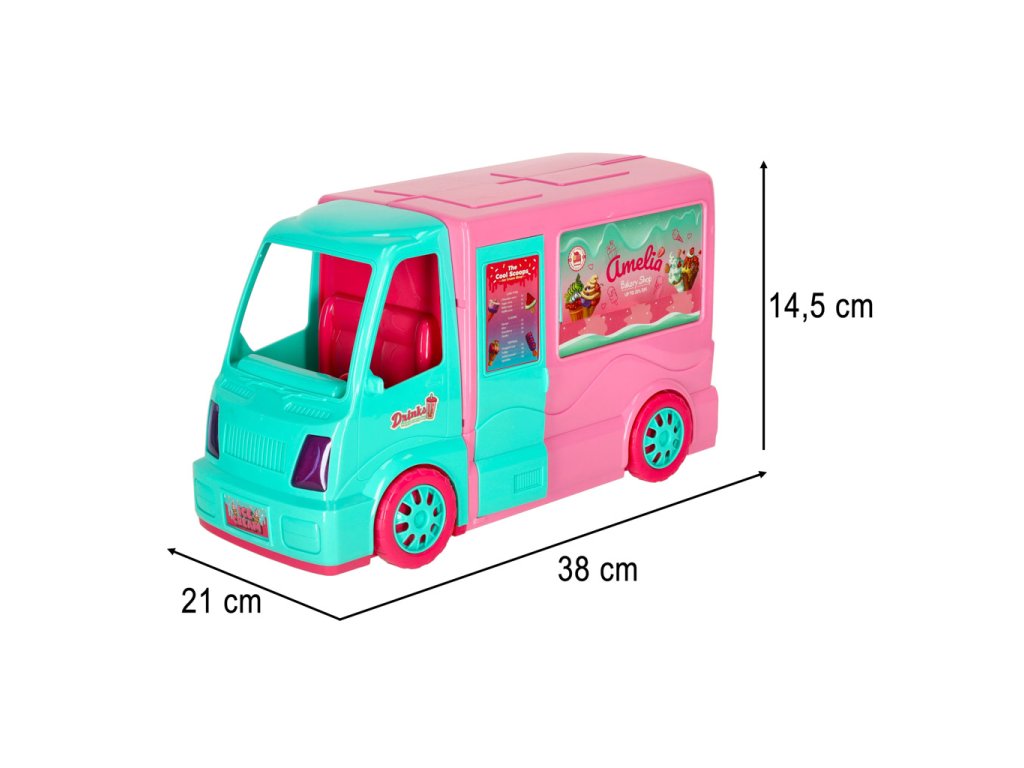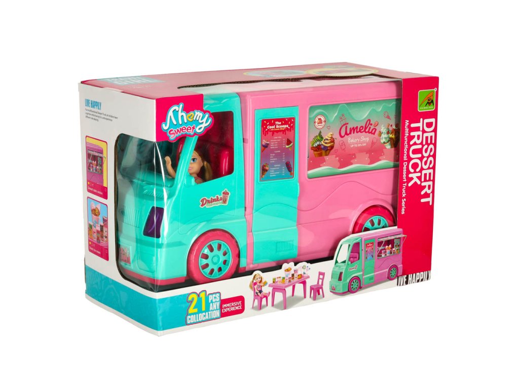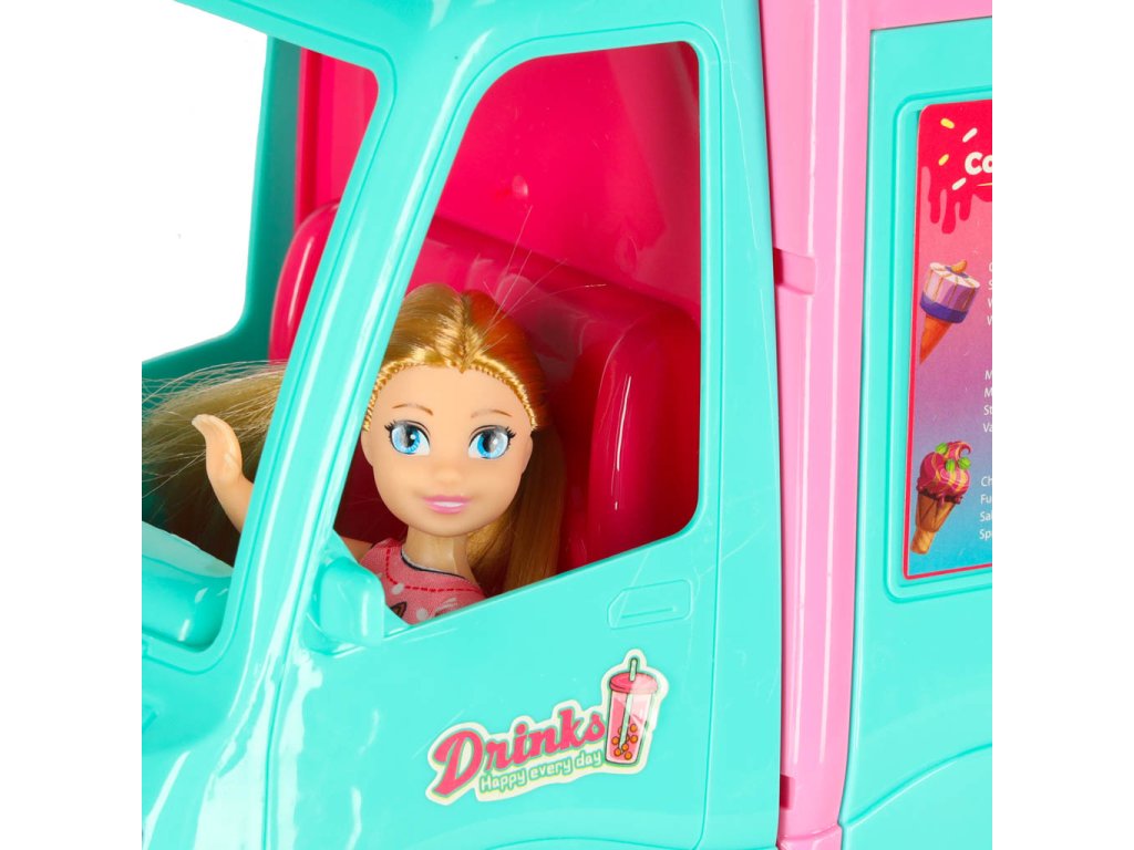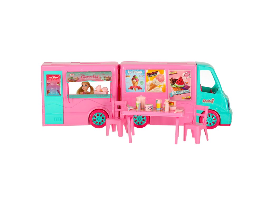 Sada kombinuje dvě funkce - vzrušující kulinářské dobrodružství, při kterém panenka podává lahodnou zmrzlinu z jídelního vozu, a relaxační cesta karavanem, který se stane útulným místem k odpočinku. Dítě může převzít roli kreativního prodejce nebo vedoucího pojízdné zmrzlinárny, a když den skončí, otevřít vozidlo a proměnit ho v pohodlný karavan, ideální pro chvíle odpočinku.