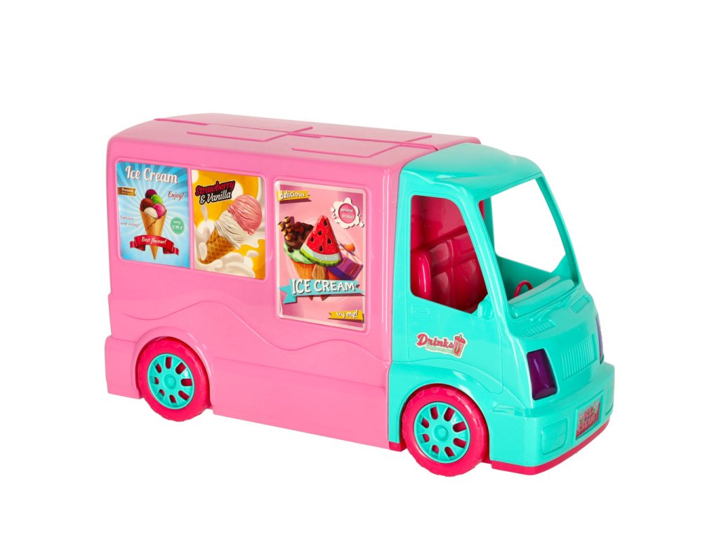 kreativní hra - Hračka je kombinací pojízdného potravinářského vozu se zmrzlinou a prostorného karavanu, který umožňuje různé možnosti hry