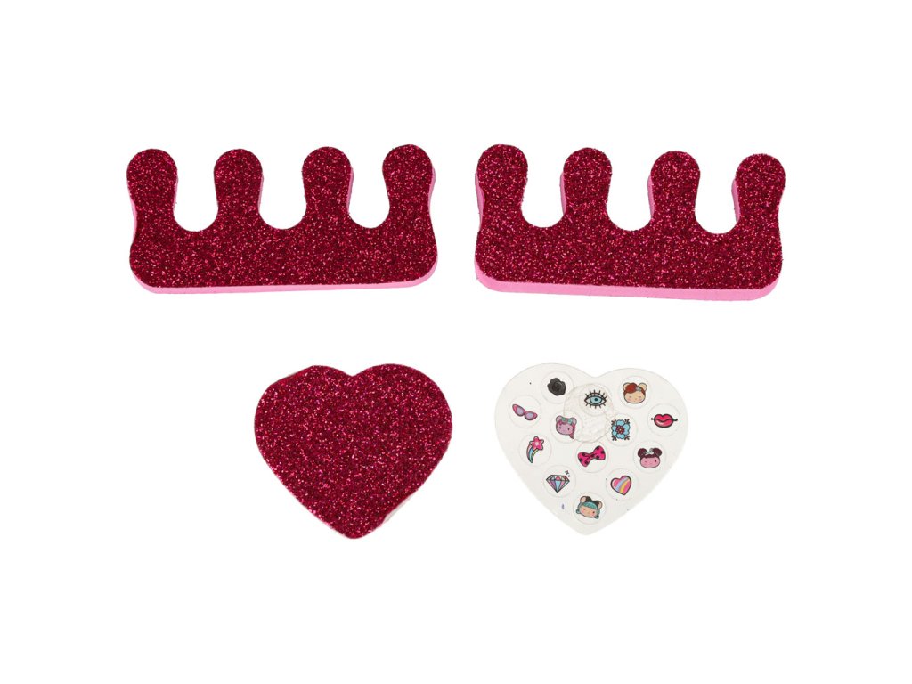 Kufr obsahuje také sada pro péče o nehty, která umožňuje malému stylistovi vytvořit na rukou jedinečné designy . Díky ní si holčička může vytvořit vlastní manikúra a pedikúra a naučte se pečovat o své nehty prostřednictvím kreativní hry. Kosmetický kufřík pro lakování nehtů obsahuje všechny potřebné položky, abyste se cítili jako v skutečné lázně .