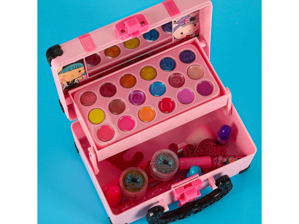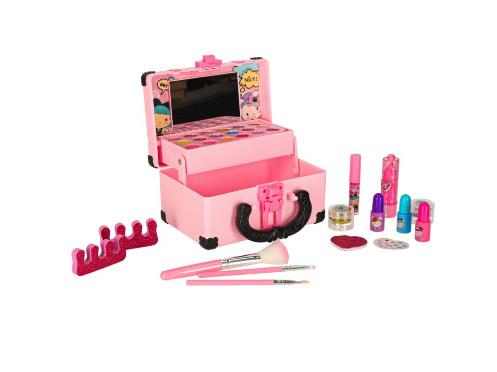 Každá položka v této sadě byla vytvořena s ohledem na děti - jedná se o bezpečné kosmetické přípravky, které jsou jemné a vhodné pro citlivou pokožku dětí. Díky kufřík se zrcátkem se může malá slečna na volné noze barva a obdivovat jeho výtvory a zároveň se učit trpělivosti a přesnosti.