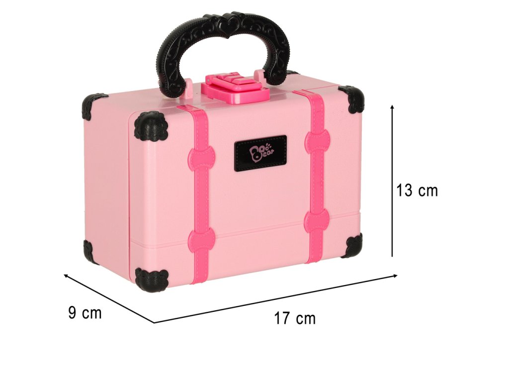 Tento elegantní kufřík pro make-up obsahuje vše, co potřebuje k tomu, aby mohla začít první experimenty s módou a krásou . Dětská dekorativní kosmetika je choulostivá a snadno omyvatelné takže malá holčička viz může bezpečně vytvořte si vlastní make-up a učit se sladit barvy . Sada příslušenství pro make-up promění každou hru ve skutečné dobrodružství v domácí kosmetický salon .