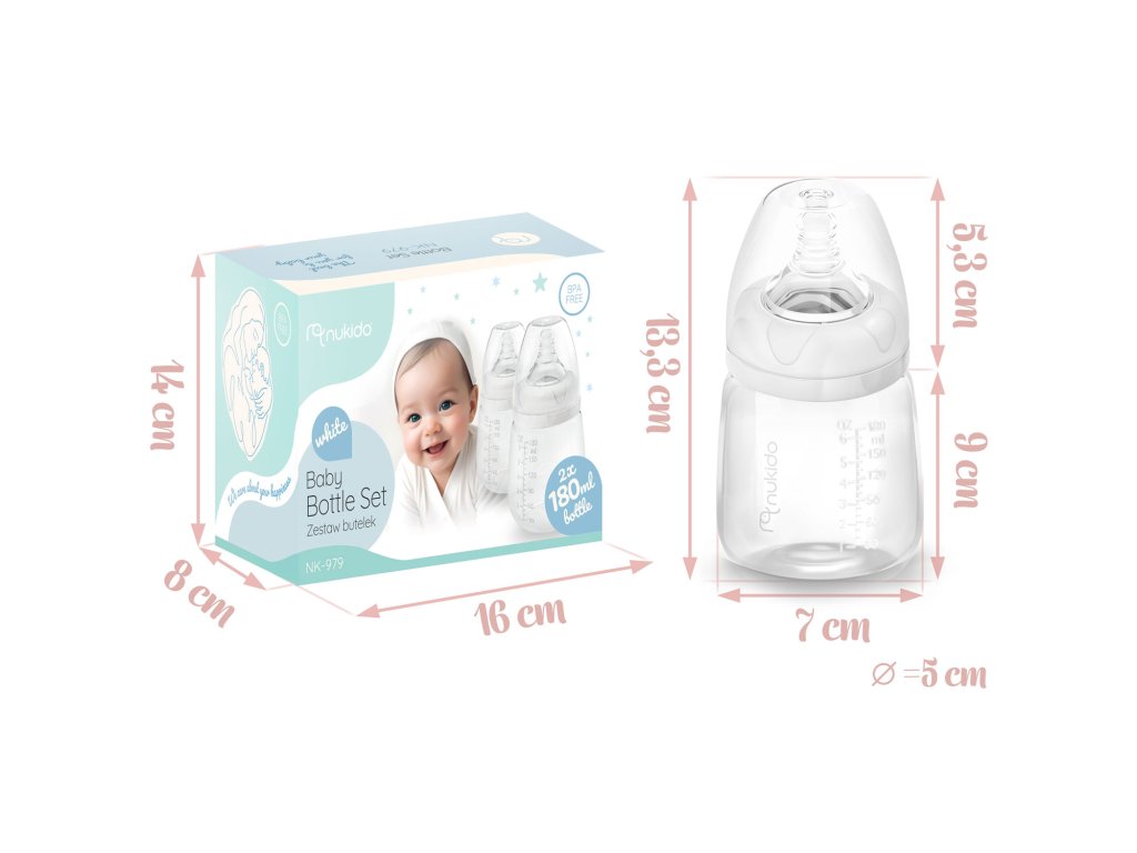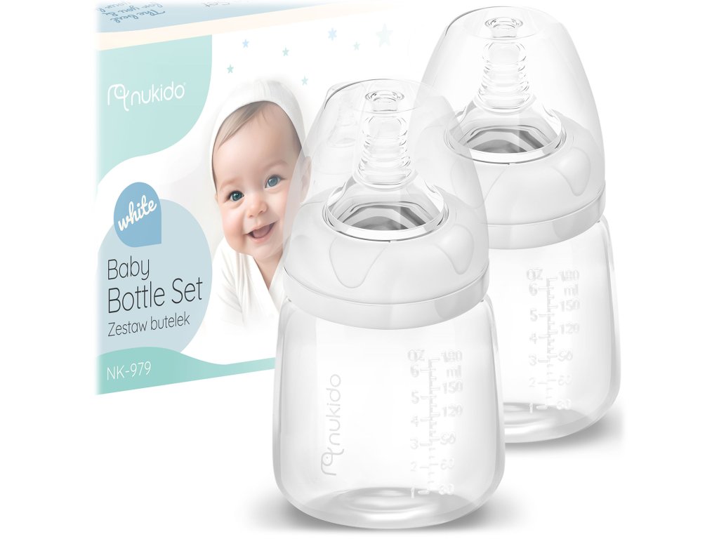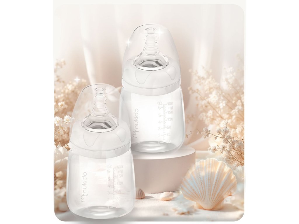 V této sadě získátedvě praktické láhve opakovaně použitelné s kapacitou180 ml. Jsou vhodnépro odsávačky mateřského mléka Nukido, ale lze je použít i samostatně.