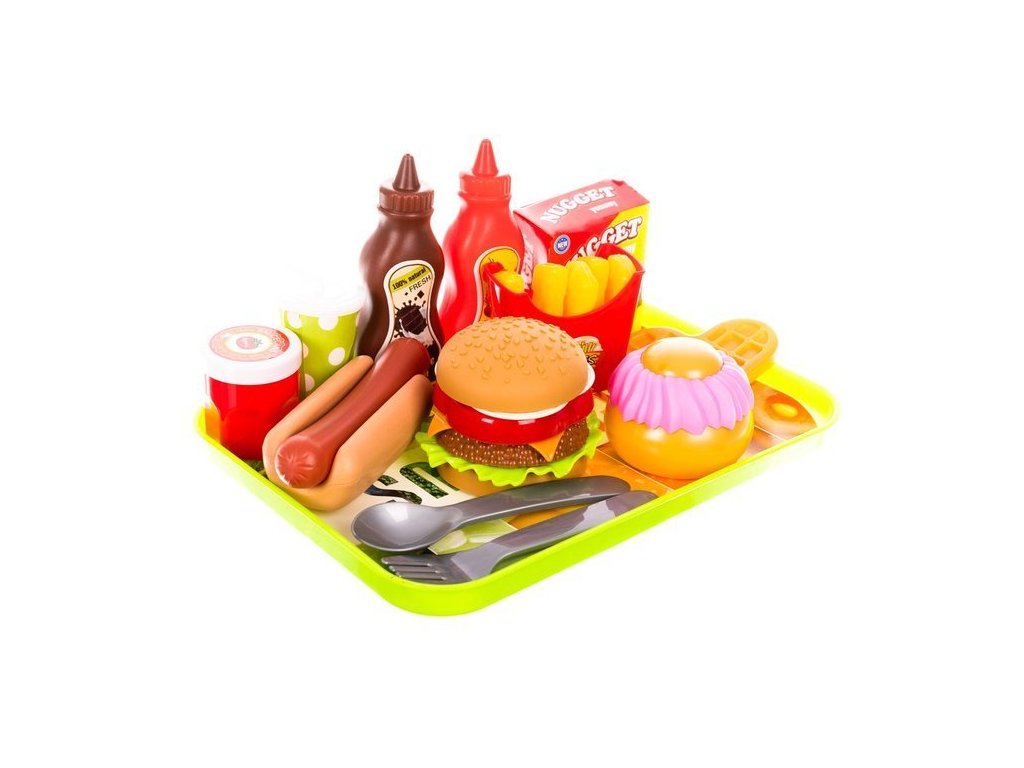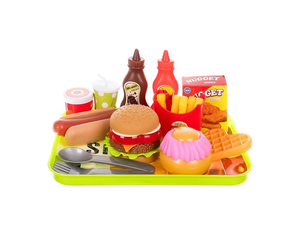 Lahodná hrací sada, kterou si zamiluje každý malý kuchař a kuchařka. Skládá se až z 26 prvků, včetně: táců, párků v rohlíku, vaflí a hranolků. Tyto výjimečně chutné výrobky umožní vašemu dítěti připravovat lahodné pokrmy. Bude to skvělý doplněk k hračkám do kuchyně (k dispozici v našich dalších nabídkách)