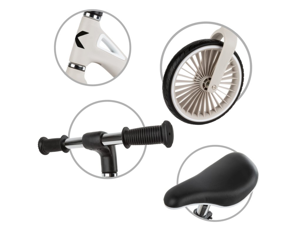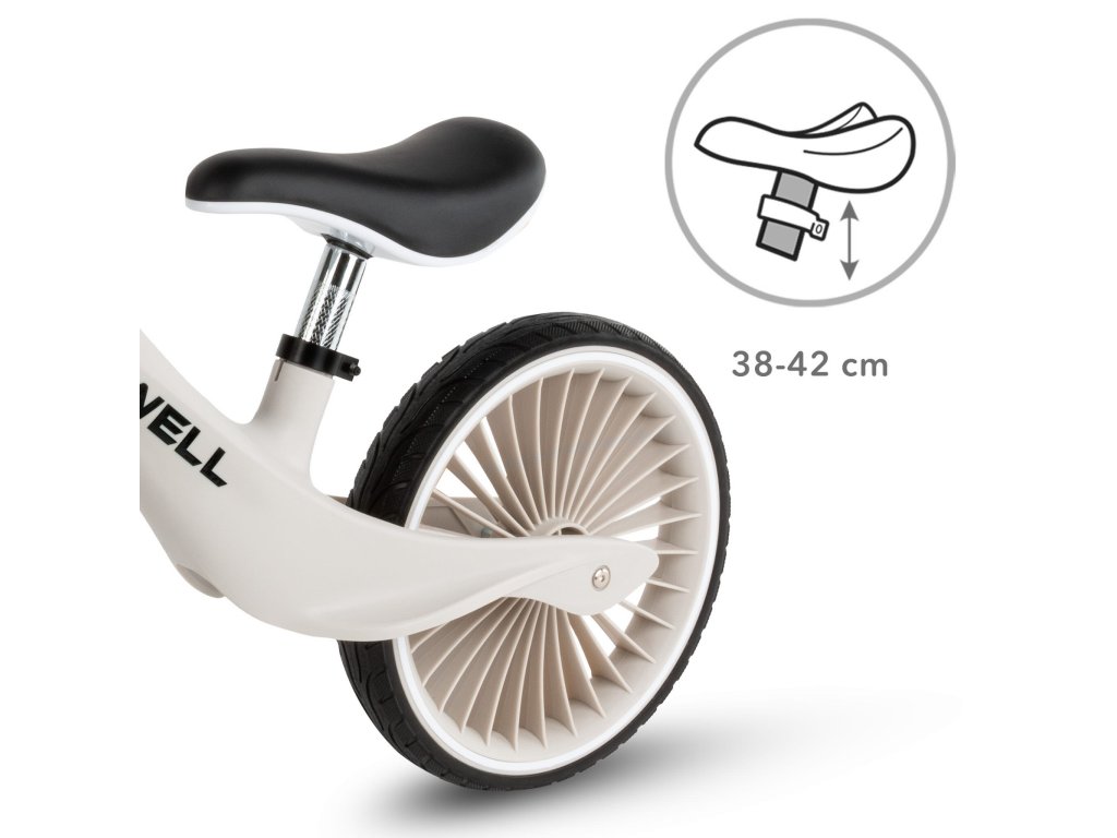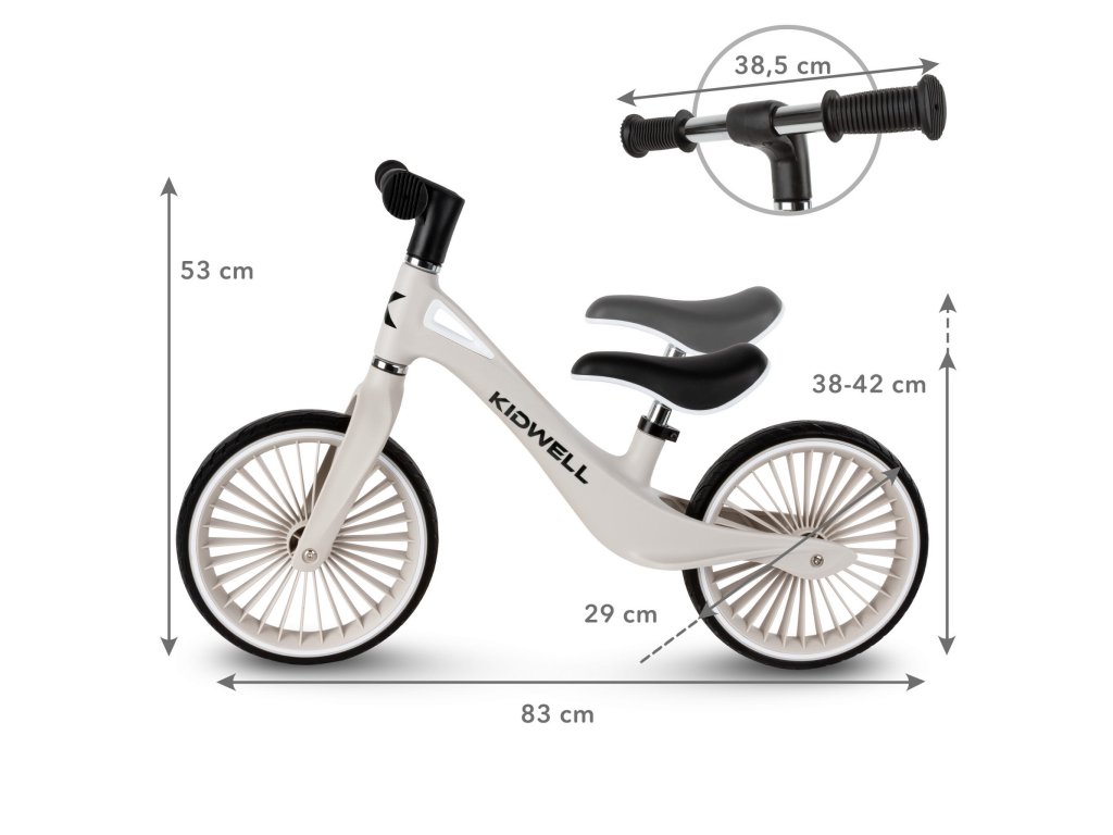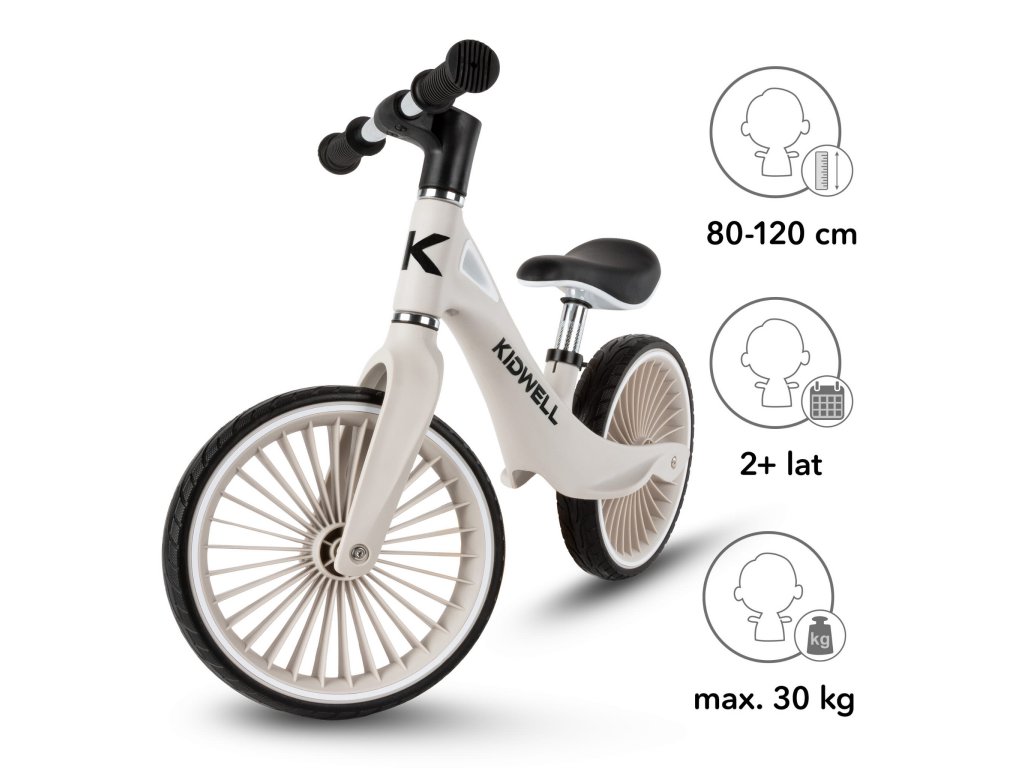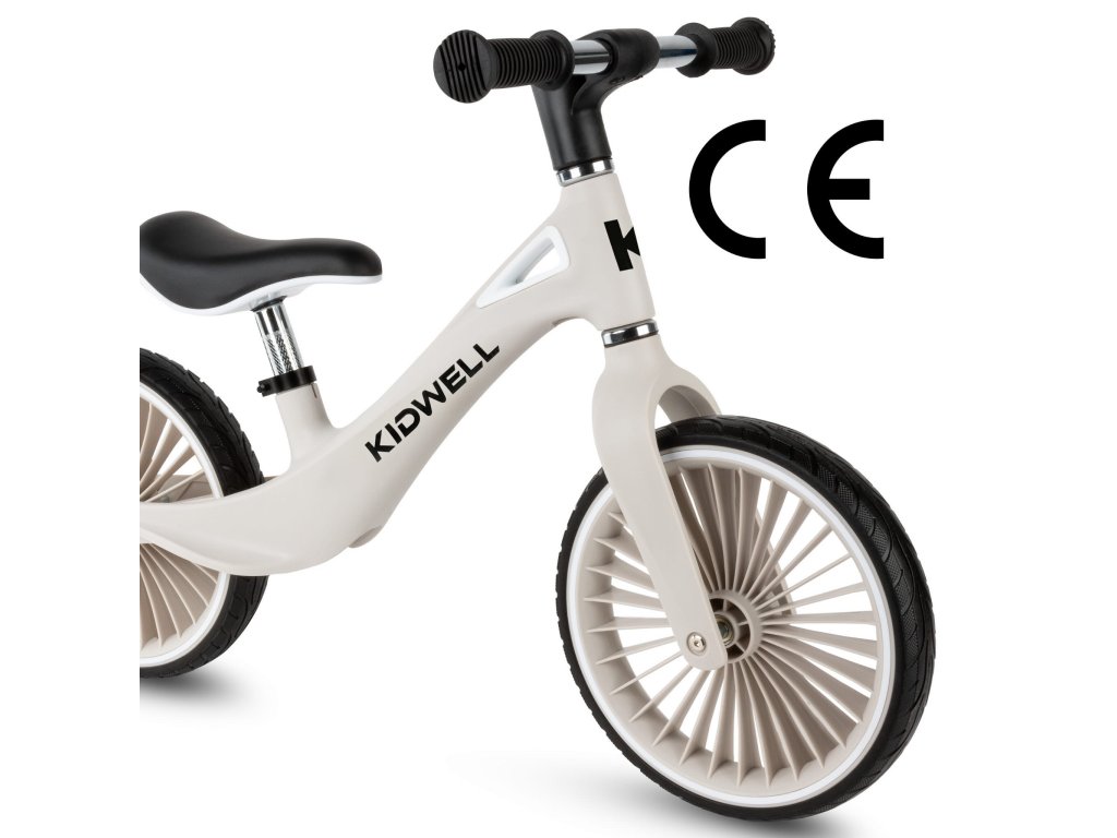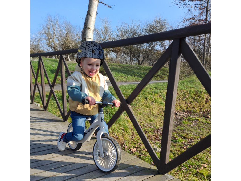 H BALANČNÍ KOLO NIX Seznamte se s modelem NIX - balančním kolem, které kombinuje moderní design, poutavé ráfky a lehký, odolný nylonový rám. Díky propracovanému designu si dítě užije plynulou jízdu a rodič může kolo snadno přenášet, když se malý cyklista rozhodne odpočívat. Je to ideální první dopravní prostředek, který dítěti pomůže rozvíjet rovnováhu, koordinaci a hrubou motoriku a připraví ho na jízdu na klasickém kole. RÁM Je vyroben z extrémně odolného nylonu, který se v průmyslu používá k výrobě komponentů odolných proti zatížení, a poskytuje výjimečnou odolnost a pohodlí při používání. Váží pouhých 3,05 kg, takže se batole bez námahy naučí jezdit a rodič může kolo snadno přenést, až dobrodružství na dvou kolech skončí. Celá řada NIX zaujme bohatou paletou barev, která nejen lahodí oku, ale také podtrhuje individuální styl mladého cyklisty. KOLA Polyuretanové pneumatiky kombinují bezkonkurenční trvanlivost s odolností proti poškození a jejich konstrukce zajišťuje vynikající stabilitu, takže dítě snáze udrží rovnováhu i při těch nejdynamičtějších dobrodružstvích. RIM První kolo na trhu s jedinečným designem ráfku inspirovaným turbínou, který jistě upoutá pozornost a odliší se od ostatních. VOLANT Balanční kolo je vybaveno plně otočnými řídítky, která se v případě pádu dítěte sklopí na plocho, čímž se minimalizuje riziko zranění a zajišťuje dodatečná bezpečnost při hře. HANDS Měkké, pogumované a protiskluzové rukojeti zajišťují pevné uchopení a pohodlné ovládání, takže dítě má kolo při každé jízdě plně pod kontrolou. SEDLO Ergonomické sedlo s měkkým polstrováním zajišťuje vysoký jízdní komfort a díky výškovému nastavení roste Kidwell NIX s vaším dítětem a poskytuje mu několik let vzrušující zábavy. BEZPEČNOST Balanční kolo Kidwell Nix splňuje bezpečnostní normy. Výrobek je certifikován podle směrnice o hračkách a norem EN 71-1,2,3. Certifikáty jsou větší zárukou bezpečného hraní. SPECIFIKACE: