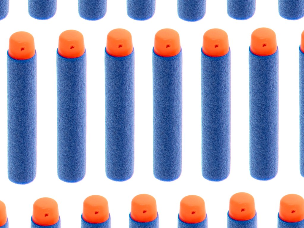 Munice je vyrobena z pěnového plastu. Každý projektil je zakončen plastovým prvkem.