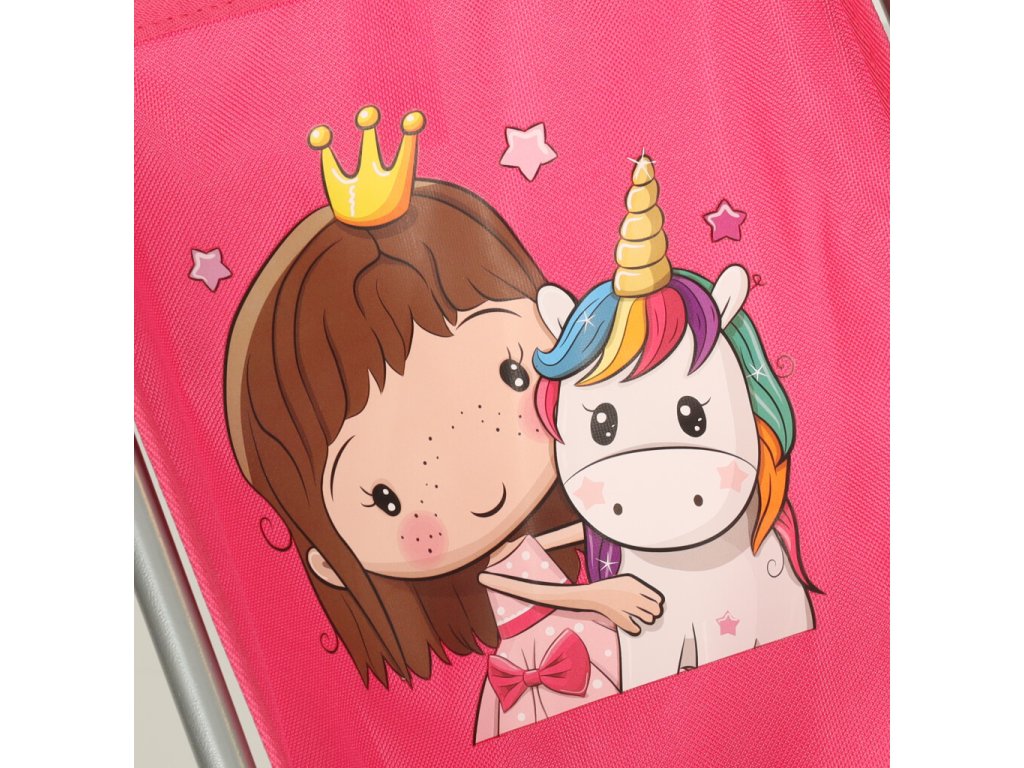 - Růžová tkanina s rozkošnou grafikou zobrazující holčičku s jednorožcem