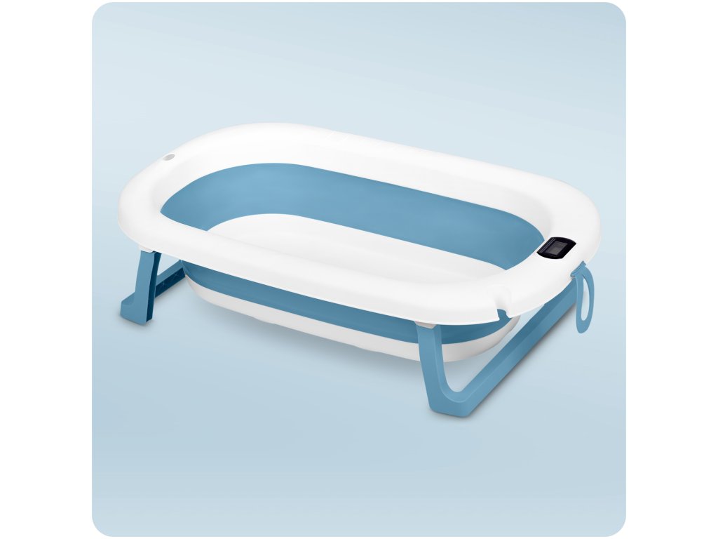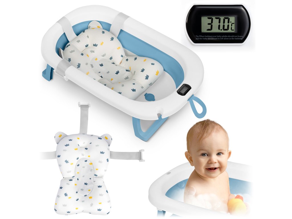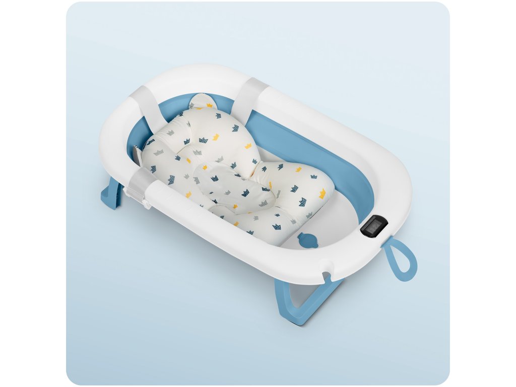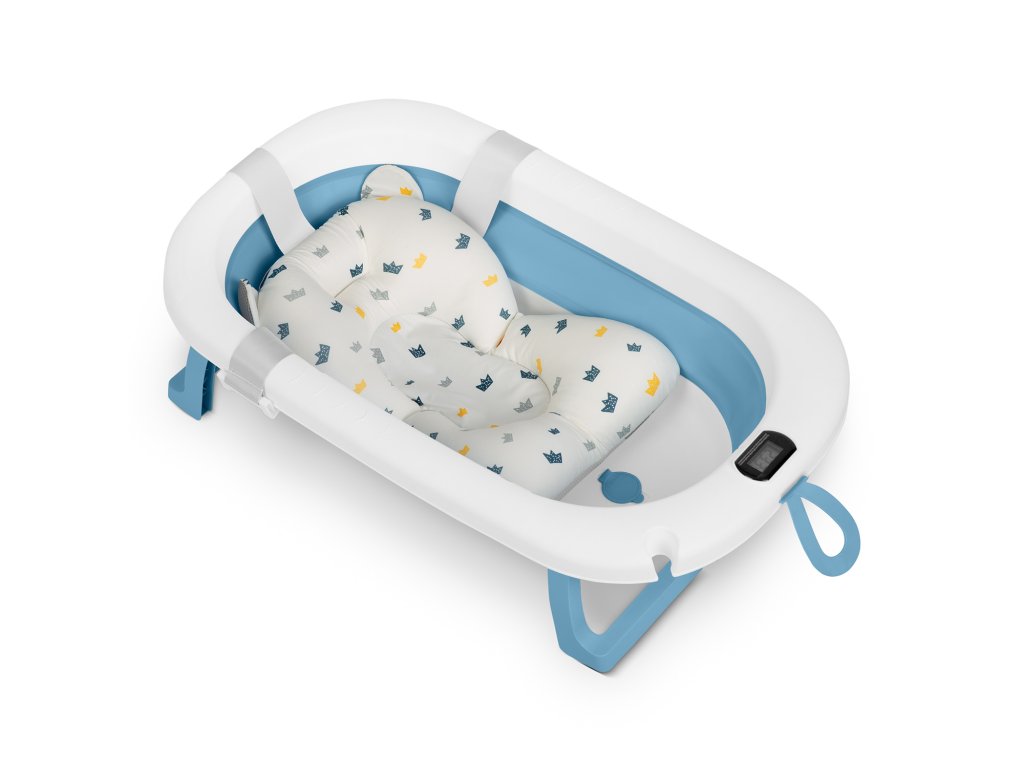 Skládací vanička pro děti, kojence s teploměrem a vložkou RK-287 bílá a modrá