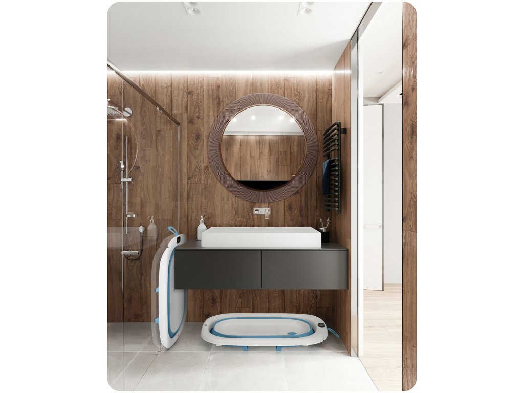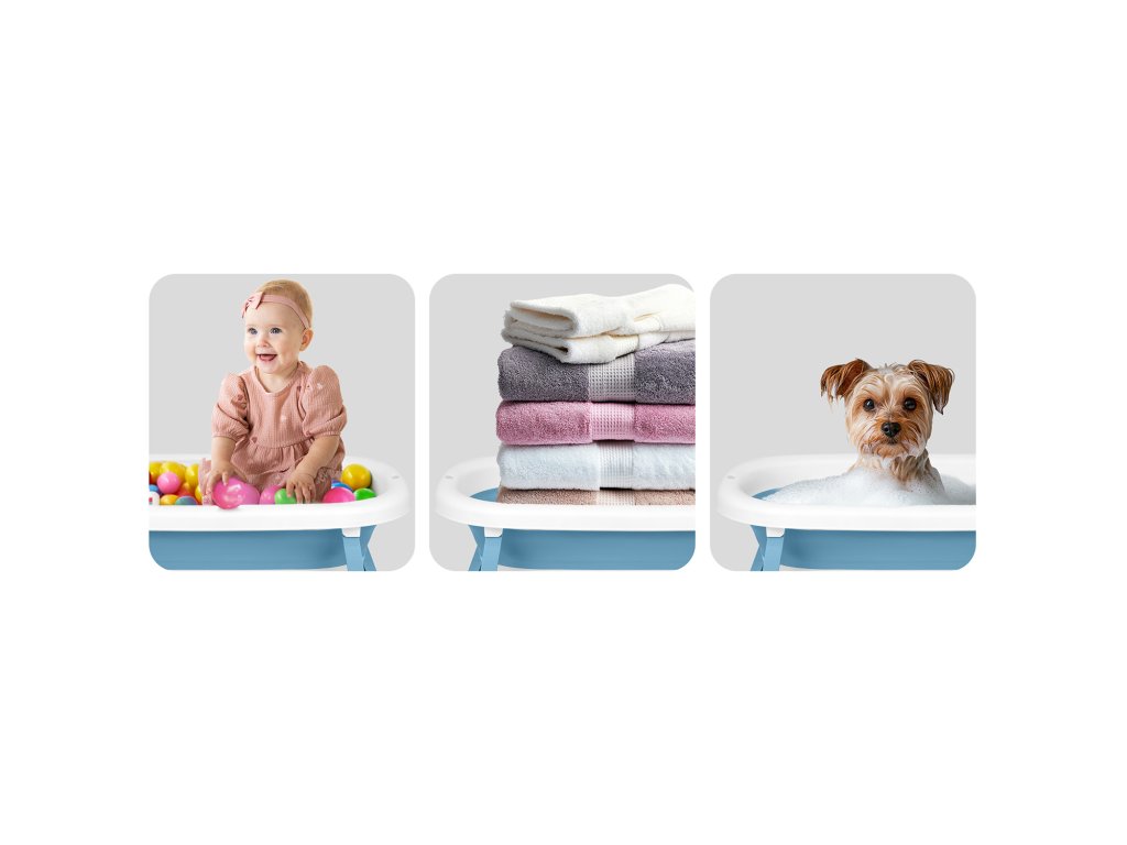 Díky možnosti složení lze vanu snadno vzít s sebou na výlet nebo ji uložit v koupelně. Užitečná pro každodenní péči i při cestování.