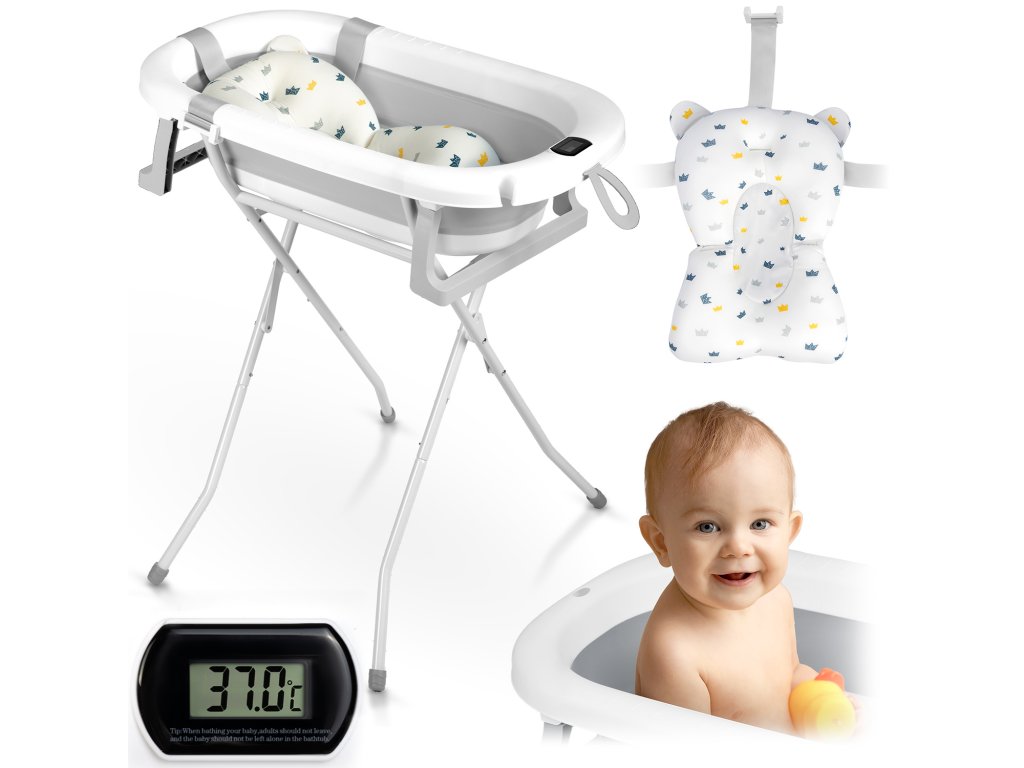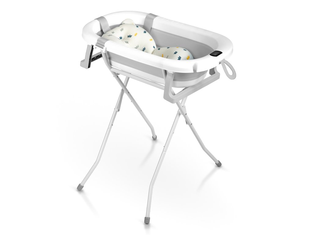 Skládací vanička pro kojence a batolata se stojanem, teploměrem a vložkou Ricokids RK-287 bílo-šedá