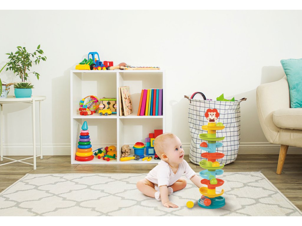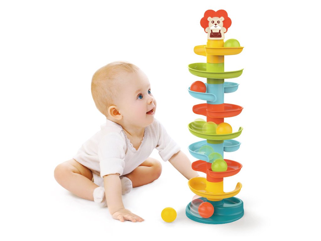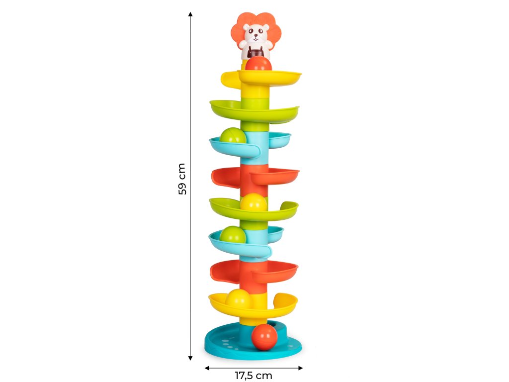 Veža s točenou guľovou šmýkačkou je skvelá hračka pre najmenšie deti ktorí sa budú s radosťou pozerať a naháňať lopty. Manipulácia s nimi rozvíjajú motorické aj manuálne zručnosti, čím sa spája zaujímavá hra s udržateľným rozvojom dieťaťa.