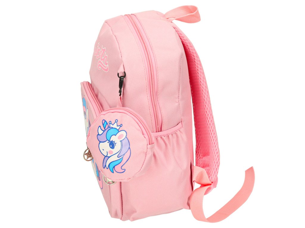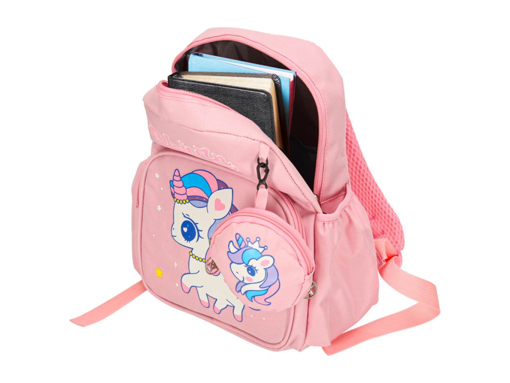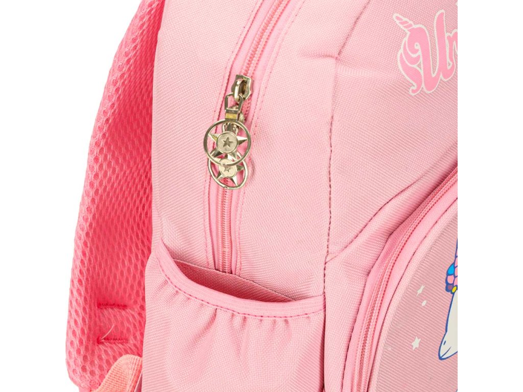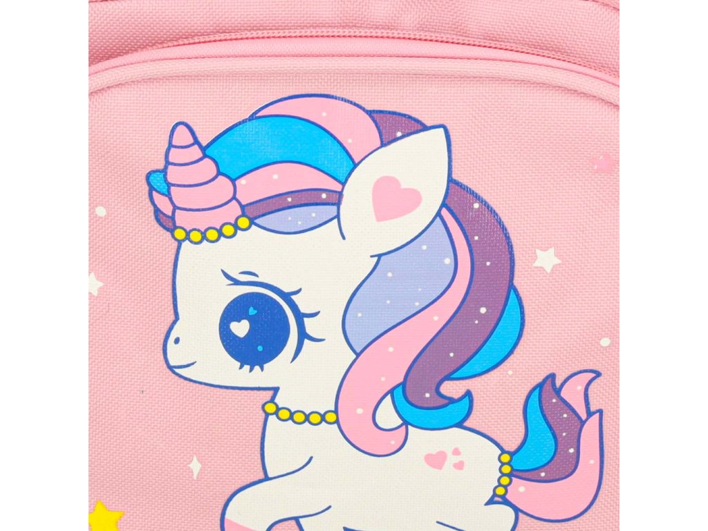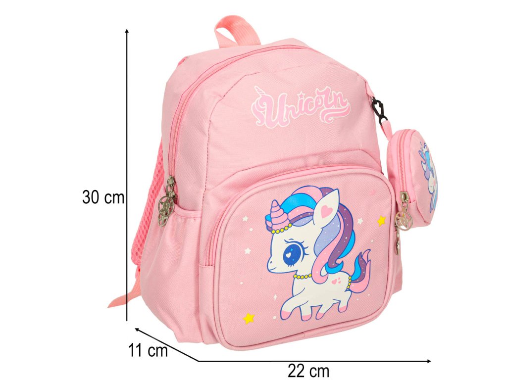 Výhody batohu s jednorožcem pro dívky: - Velká hlavní přihrádka - srdce batohu, do kterého se vejde vše, co malý předškolák potřebuje: sáček na snídani, bidon, náhradní oblečení nebo milovaný plyšák. Je to ideální prostor pro dobrodružný den venku Kapsa na zip na přední straně - praktické a snadno přístupné, ideální na ubrousky, pastelky, miniknihy nebo jiné poklady Kulatá kapsa na přední straně - roztomilý poutavý doplněk! Lze ji použít jako mini peněženku nebo tajný sáček na sladkosti Dvě boční kapsy - jsou navrženy s ohledem na praktičnost - vejde se do nich láhev s vodou, krabička s džusem nebo malé občerstvení - Vnitřní kapsa - schovaný v hlavní přihrádce je bezpečným místem pro něco opravdu důležitého: malou hračku, medaili, kroužek na klíče nebo "tajný kamínek".