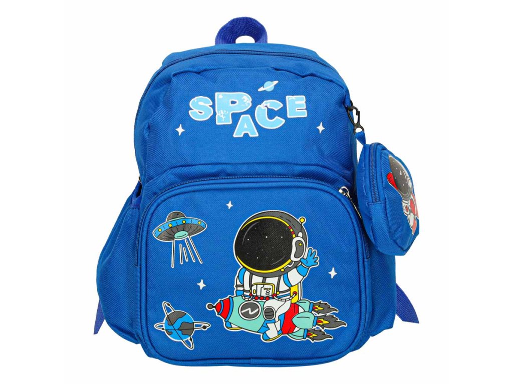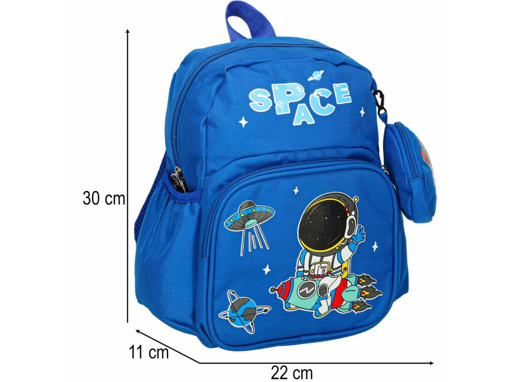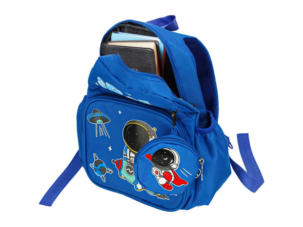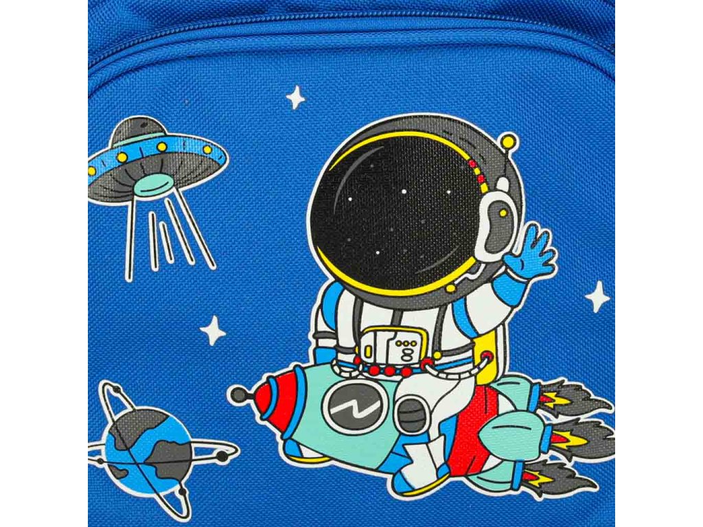 - 1× velká hlavní přihrádka - se vejde do její snídani, oblečení a dokonce i oblíbeného plyšového medvídka.. 1× vnitřní kapsa - o malých tajemstvích 1× přední kapsa - ideální na poklady a drobné občerstvení - 1× kulatá kapsa - stylové a praktické ozdoby - 2× boční kapsy - se vejde do láhve na vodu nebo láhve. - Věk dítěte: 3+- Materiál: nylon s prodyšnou bavlněnou síťovinou Barva: modrá (vzor astronaut) - Typ zapínání: zip (zip) - Popruhy: nastavitelný, měkký Objem: přibližně 7-7,5 l- Hmotnost: lehký batoh s hmotností: 320 g