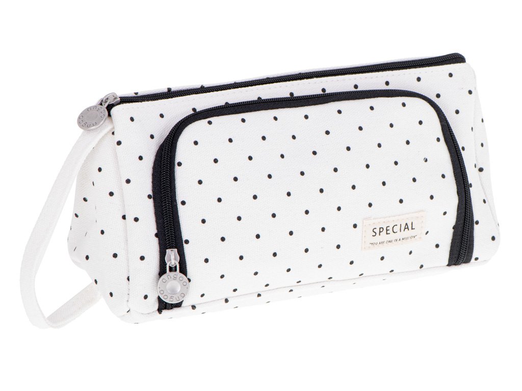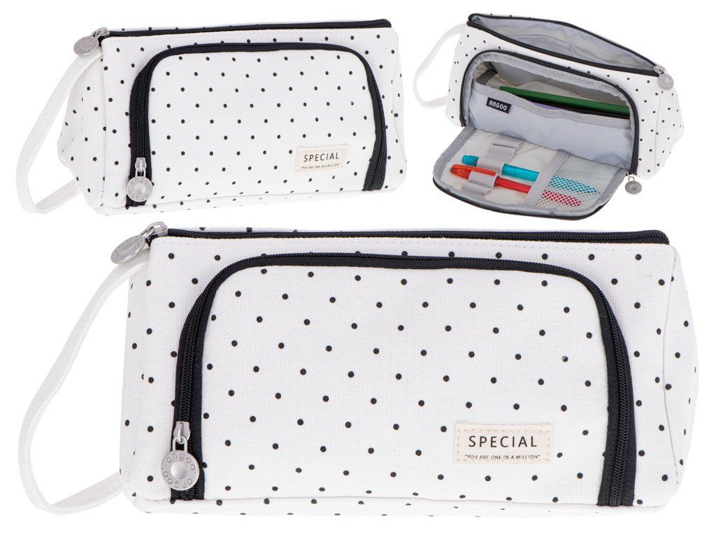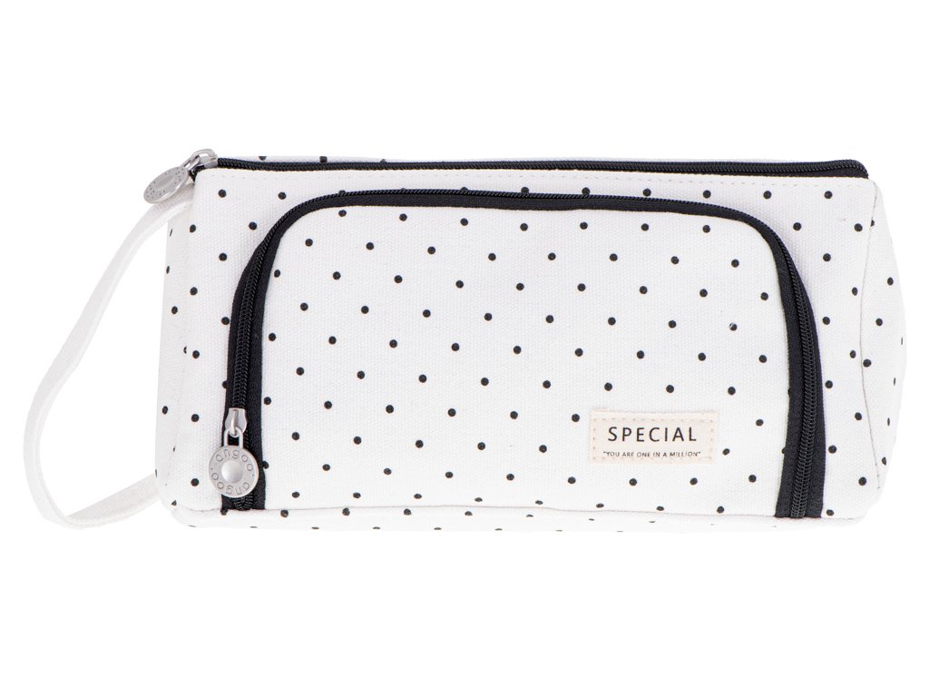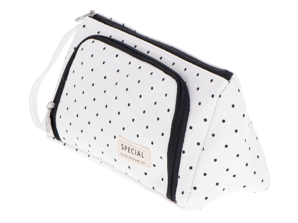 ŠKOLNÍ PENÁL DVOJITÝ TOALETNÍ KUFŘÍK BÍLÉ TEČKY