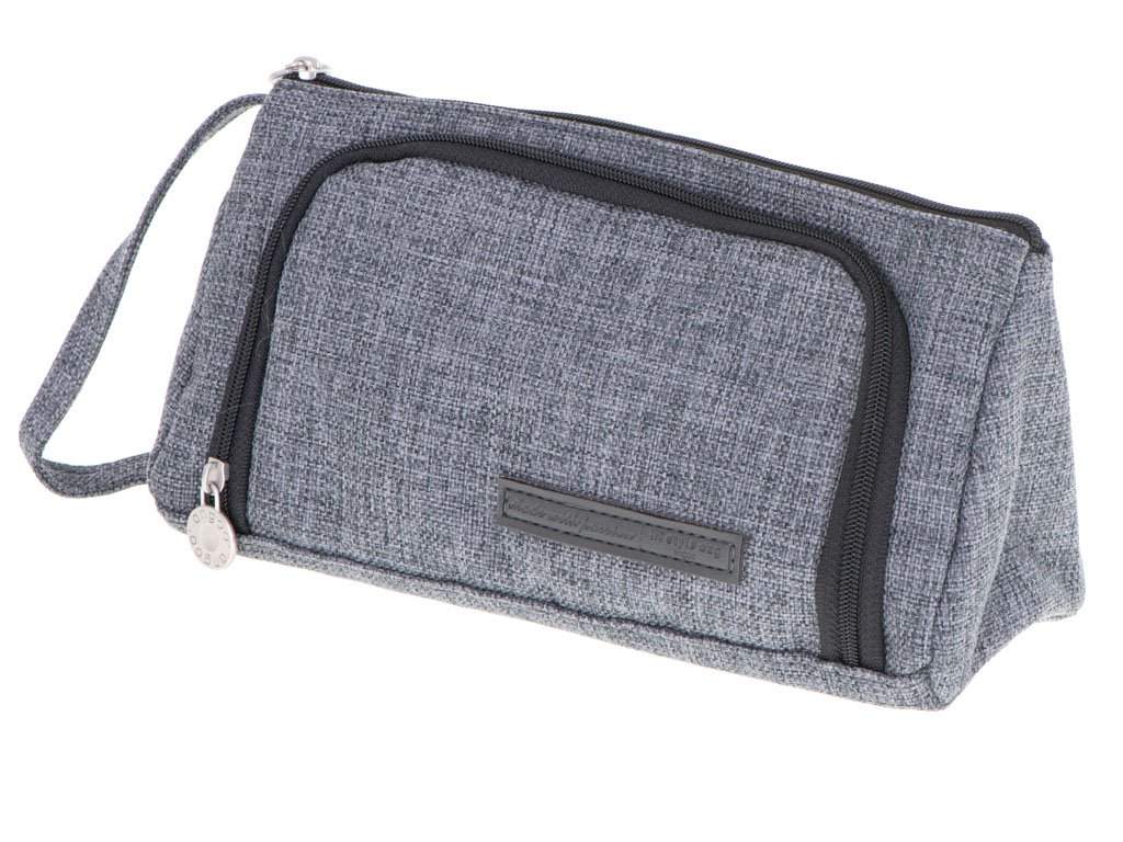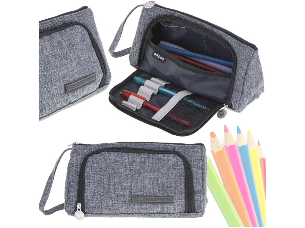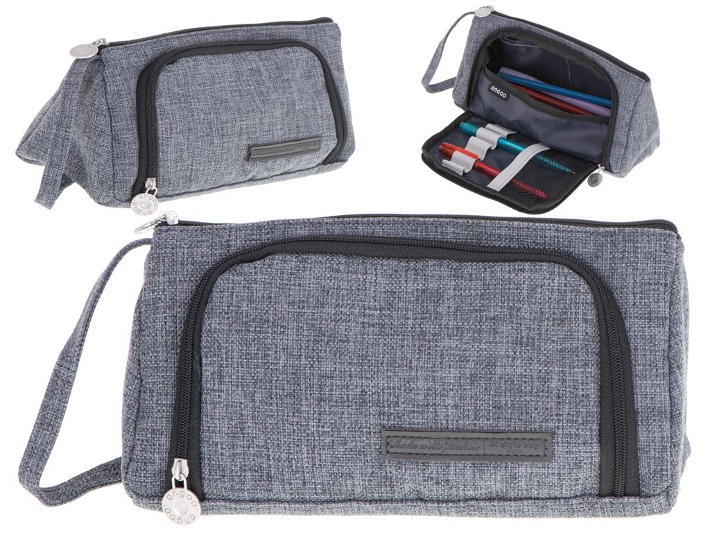 Školní penál s dvojitou kapsou vanity case šedý