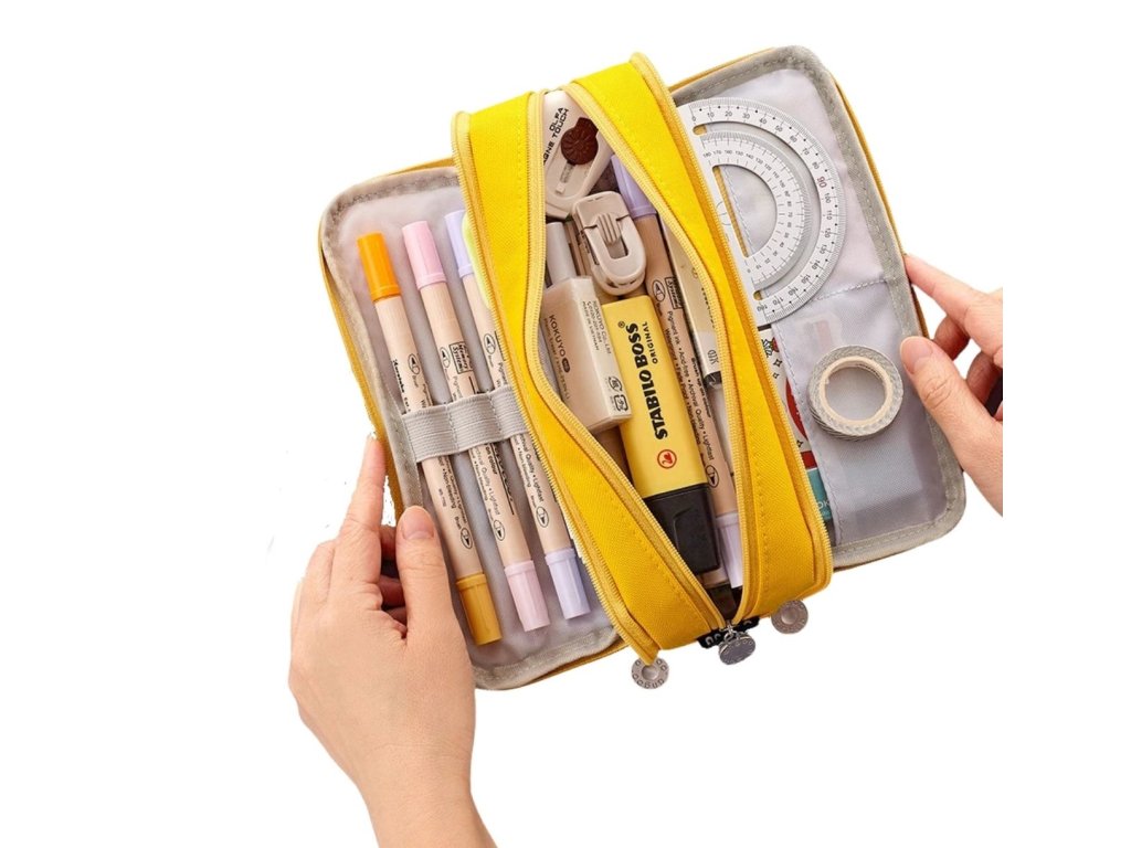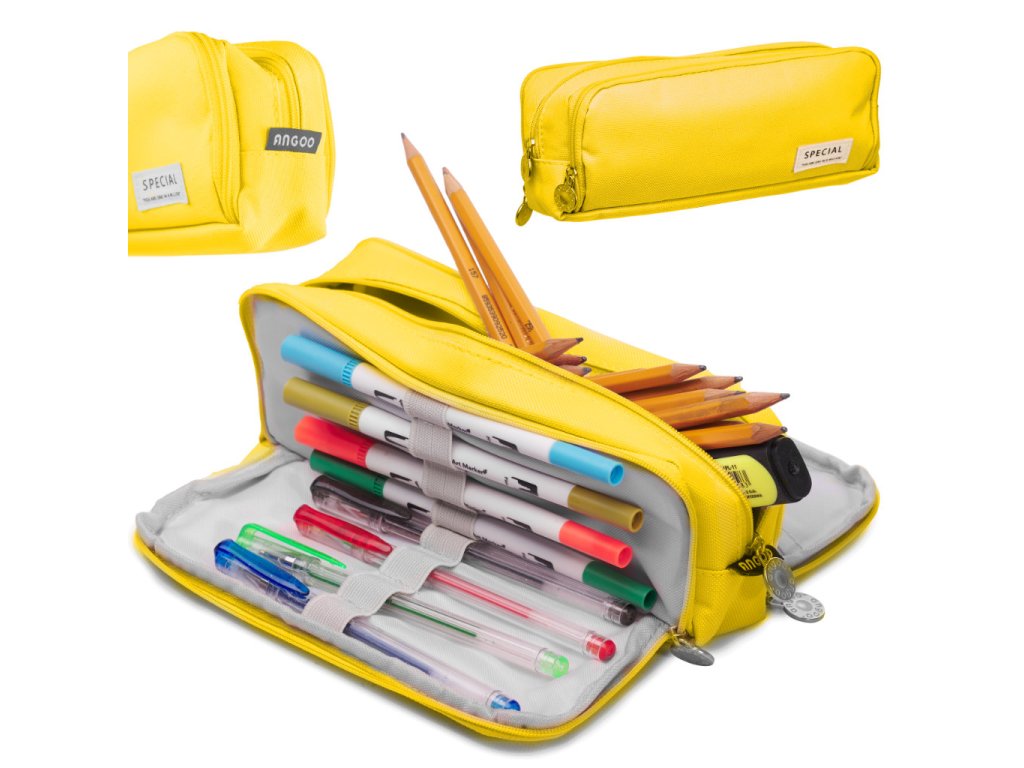 Školní penál trojitá taška marnost pouzdro žlutá