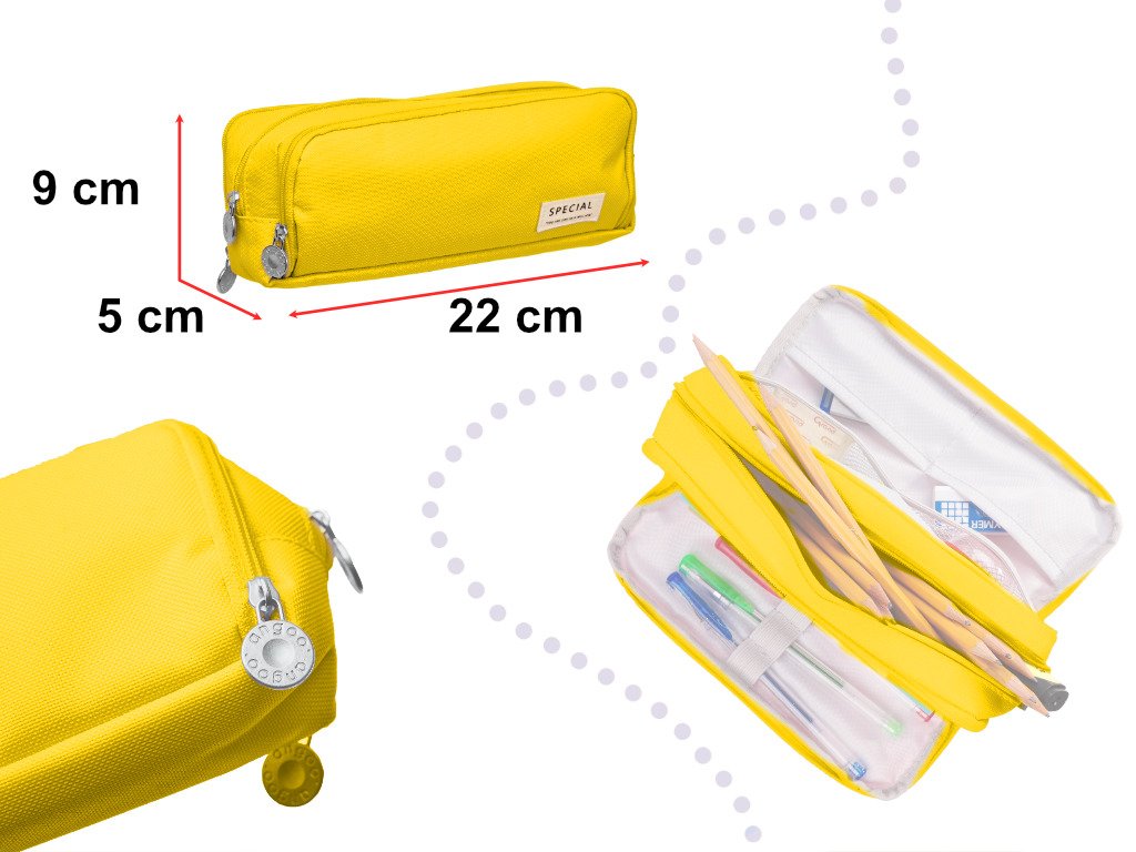 Školní penál trojitá taška marnost pouzdro 3v1 žlutá