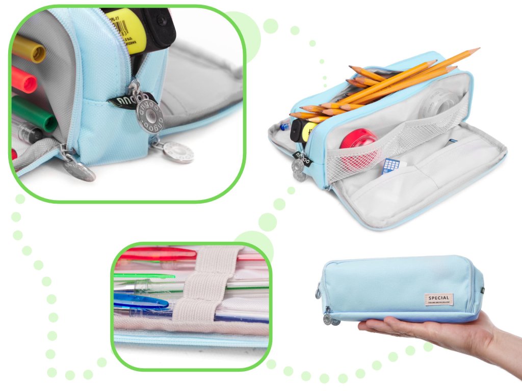 Pomůže vám uspořádat všechny psací potřeby, kosmetiku a další drobnosti v kabelce nebo batohu.