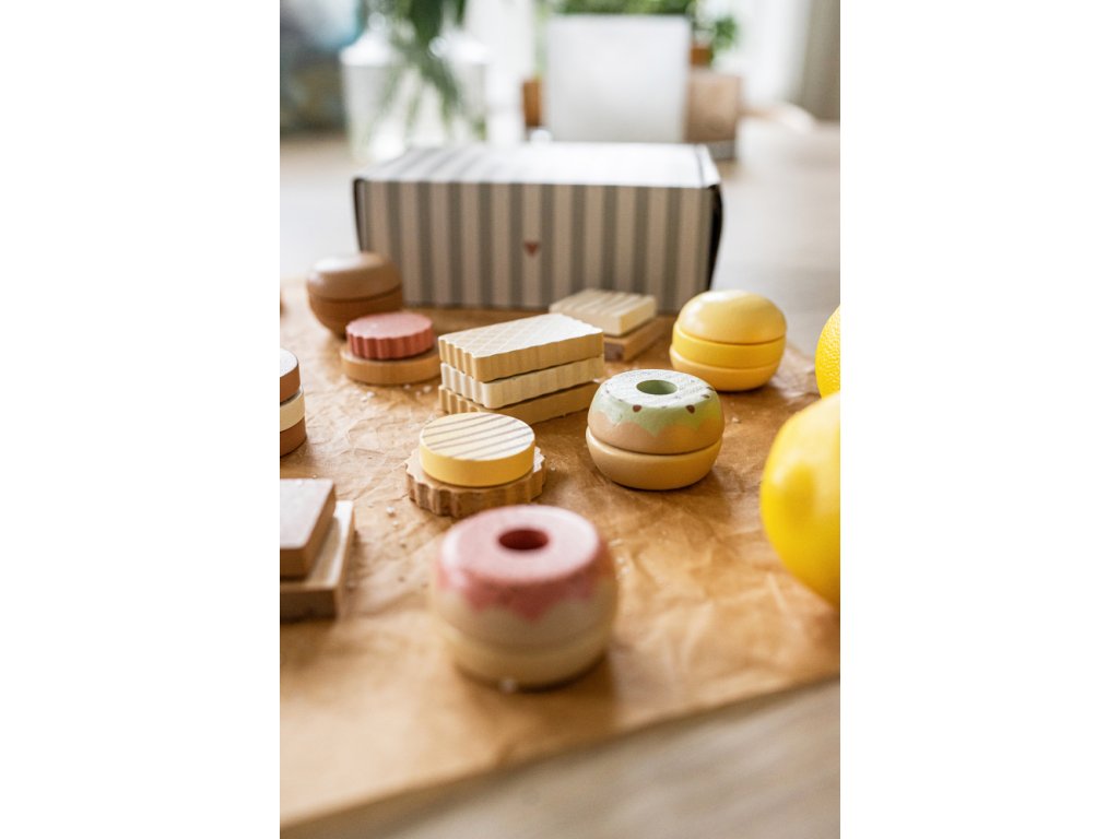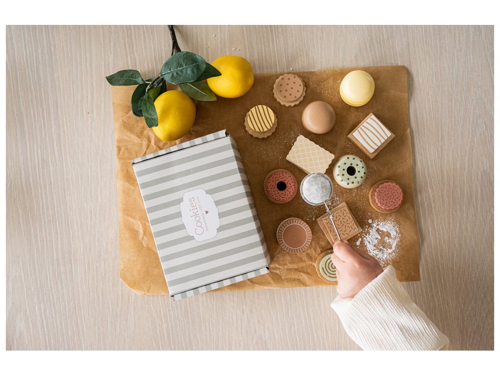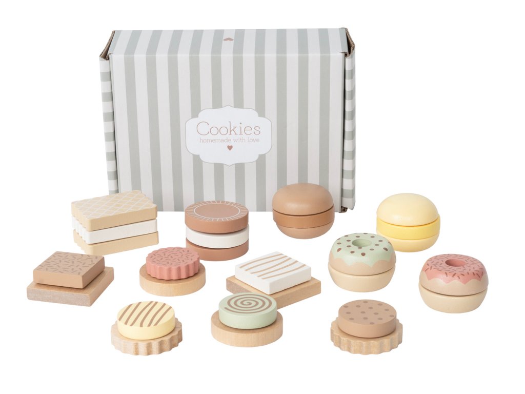 Okouzlující nádoba na sušenky s 12 druhy sušenek vás potěší na každém setkání s přáteli. Vyrobeno ze dřeva s certifikací FSC™. Rozměry: 7x20x14 cm. S certifikátem bezpečnosti.