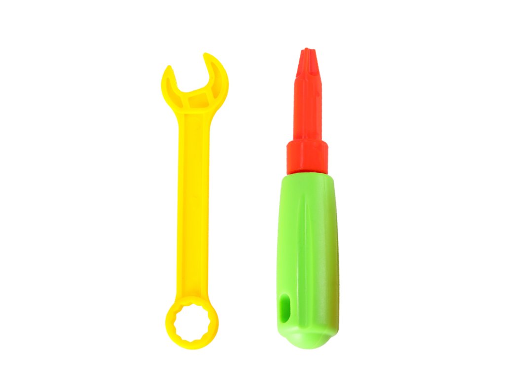 Po vložení baterií a spuštění se šroubovák roztočí jako skutečný přístroj.