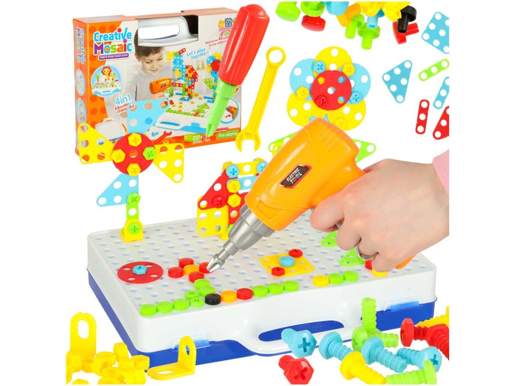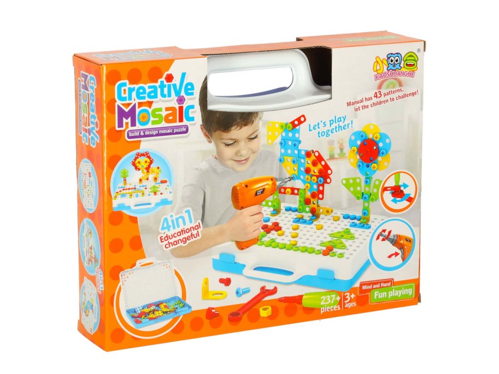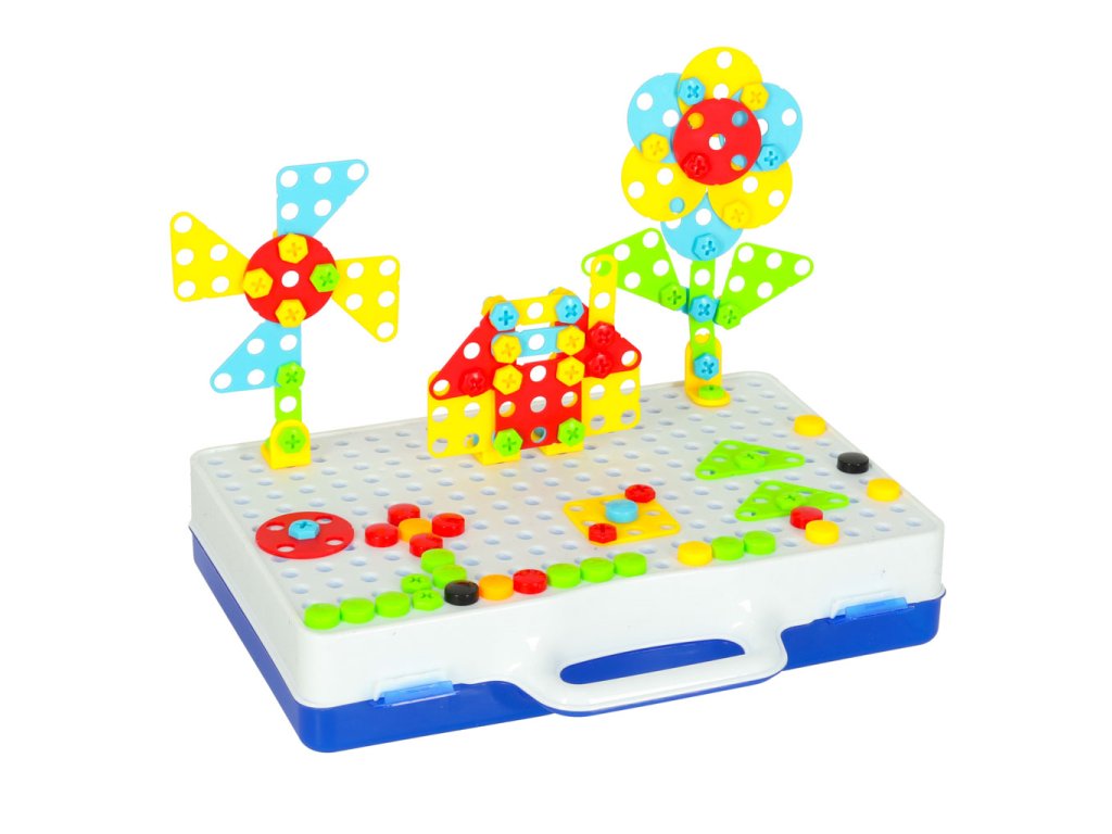 VÝUKOVÉ ŠROUBOVACÍ PUZZLE V KUFŘÍKU S 237 PRVKY.