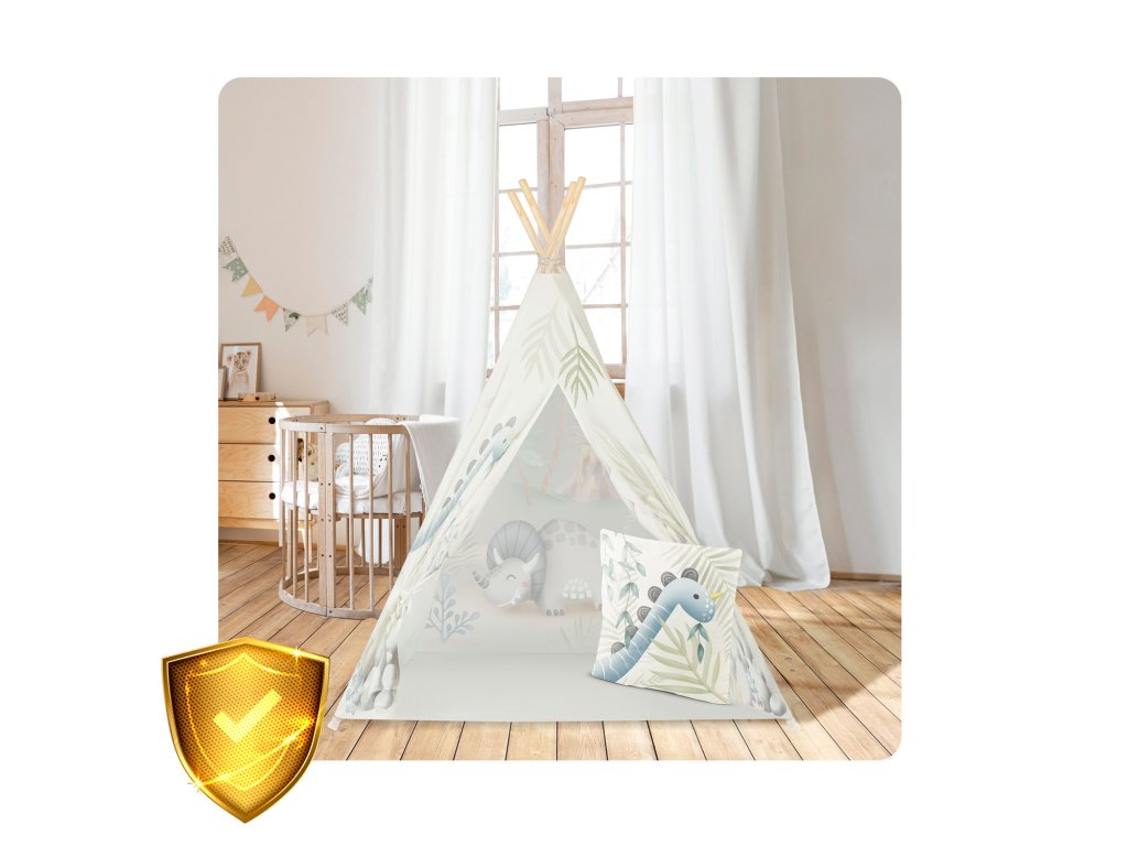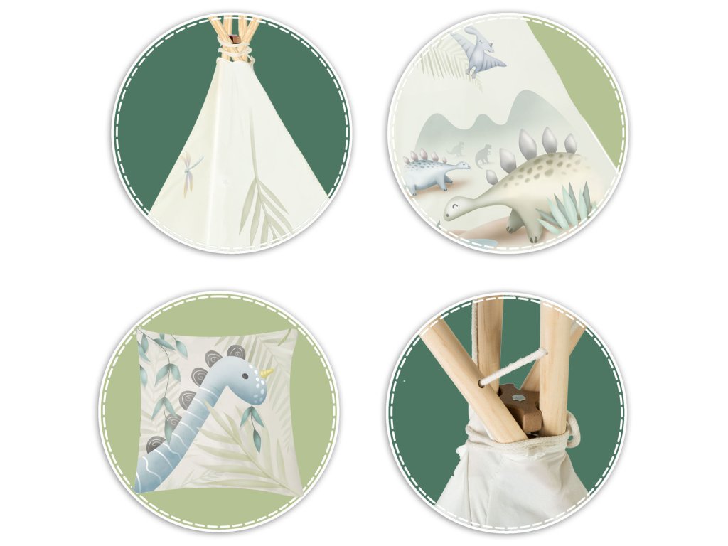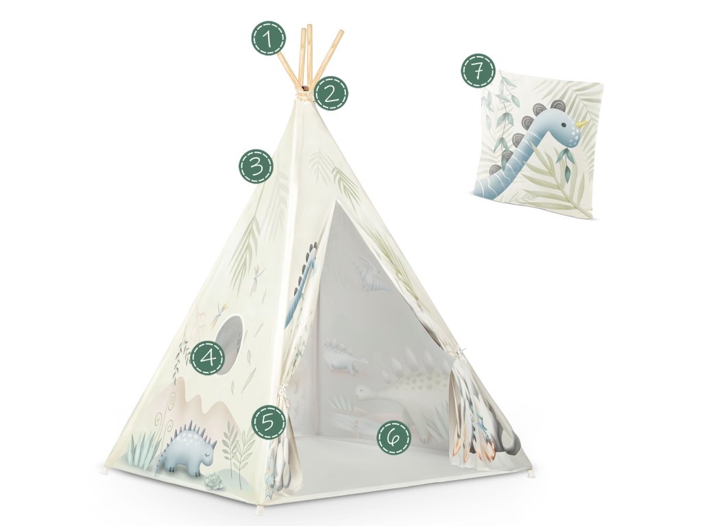 Každý TIPI je dodáván skrásný polštář a stabilizátor dinosaurů, jak je vidět na obrázku!