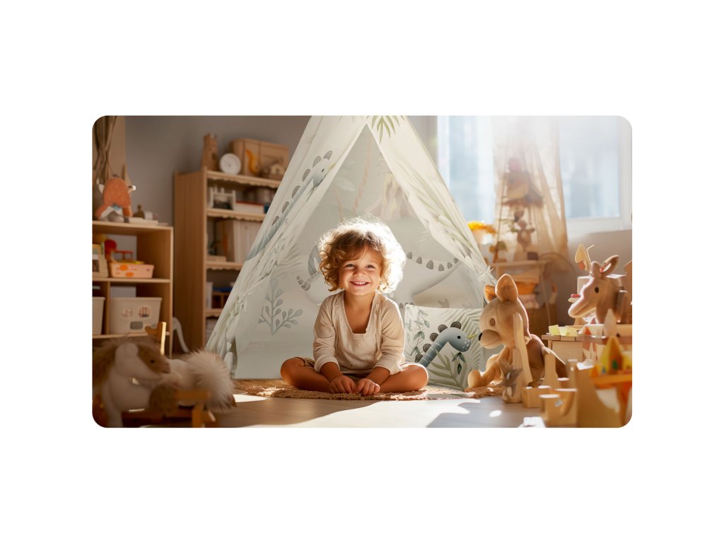 Dětský stan ve tvaru indiánského teepee jeRozložení místnosti HIT yow pro děti.