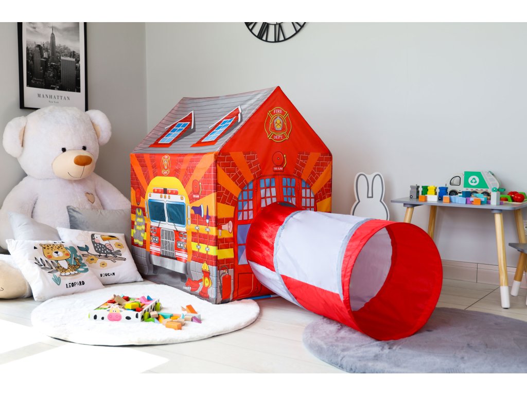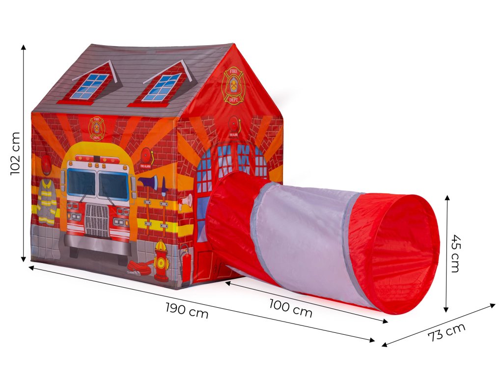 Hasičská stanice s tunelem bude Vaše ratolest se bude moci vžít do role hasiče. Stan se rychle stane oblíbeným místem pro hraní a zaujme vaše dítě na dlouhé hodiny. Stabilní konstrukce a odolný materiál umožňují hru na zahradě, díky čemuž je hra ještě poutavější.