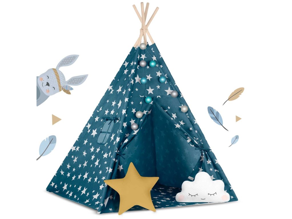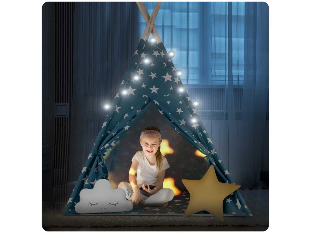 Aby bylo hraní ještě zábavnější, je týpí dodáváno s polštáře z kvalitní bavlny a šitá podlaha obsahuje,