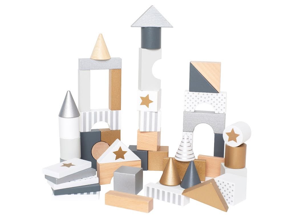 Stavebnice se 47 dřevěnými kostkami různých barev a tvarů. Postavte vysoké věže, hrady nebo cokoli, co vás napadne! S těmito kostkami se vaše děti zabaví na dlouhé hodiny.