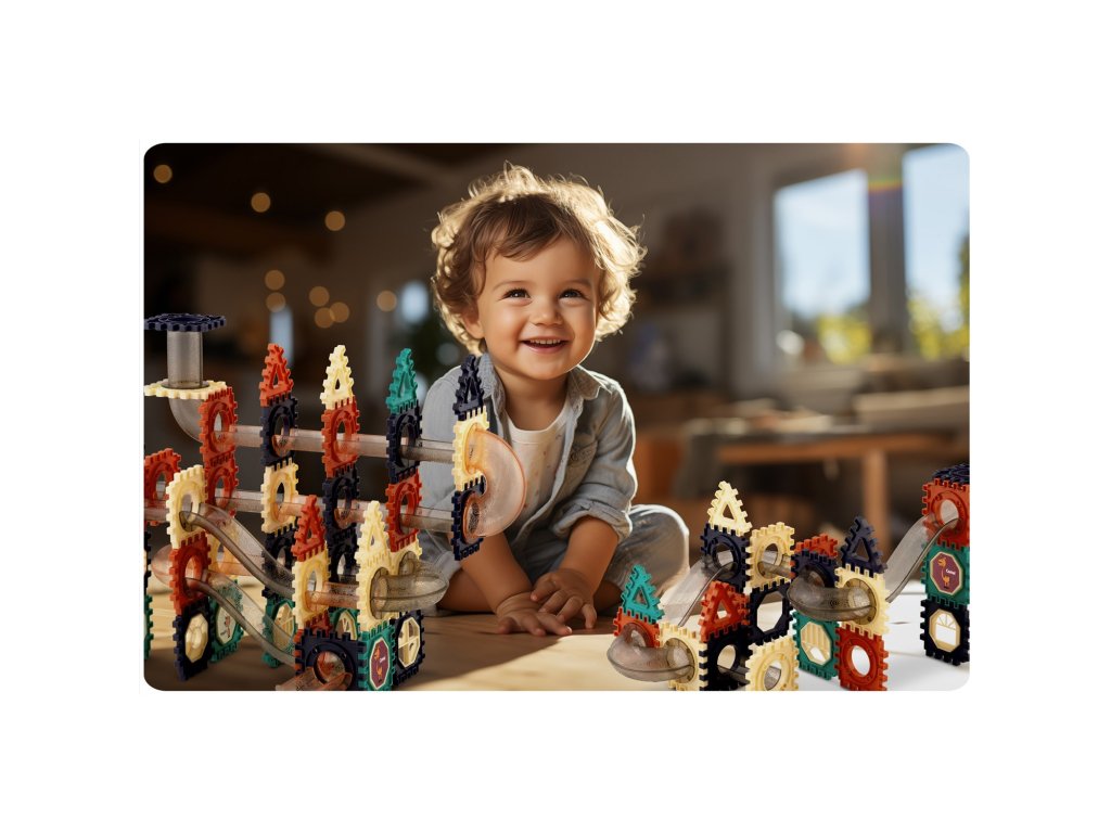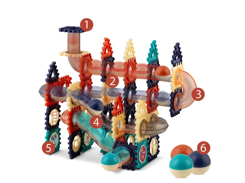 Tieto bloky podnecujú kreativitu mladých myslí a prenášajú deti do sveta, v ktorej sa loptičky preháňajú a kotúľajú po napínavej dráhe na každom kroku. Konštruovaním a prestavovaním si deti zdokonaľujú základné kognitívne zručnosti, zvyšujú schopnosť riešiť problémy a zdokonaľujú priestorové povedomie - a pritom sa vzrušujúco zabávajú!