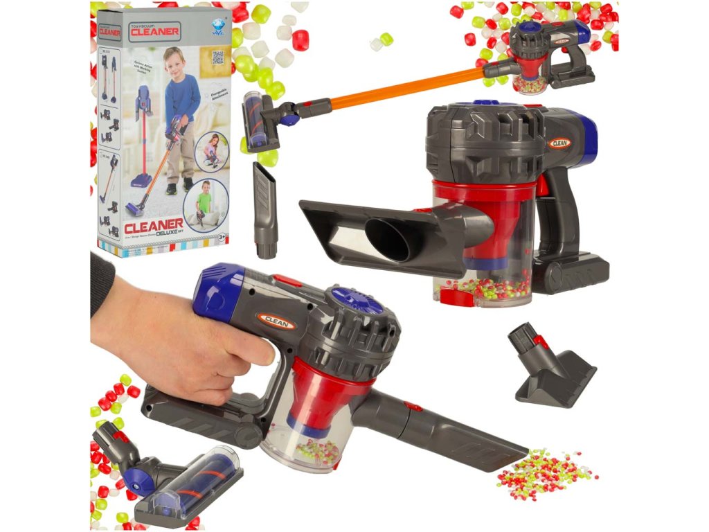 Vertikální vysavač pro děti 3v1 s různými hubicemi a kuličkovým sáčkem. Ideální dárek pro děti od 3 let. Kreativní hračky zároveň učí.