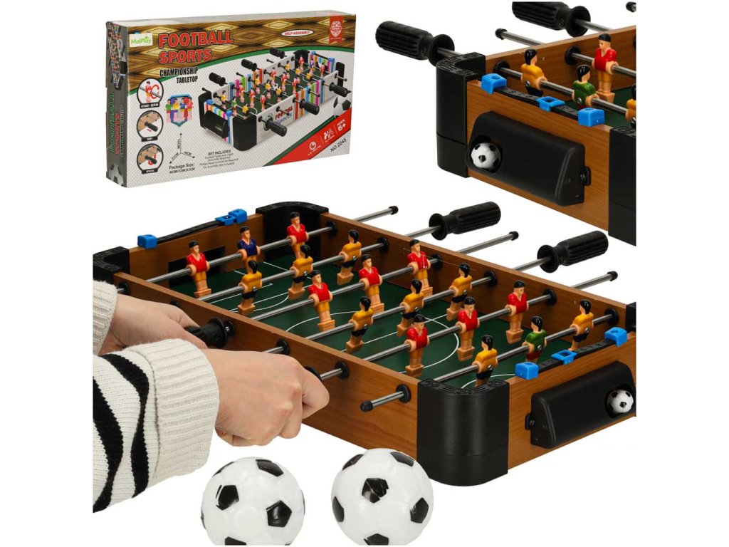 Stolní fotbal pro děti od 6 let. Rozměry: 50x44x10 cm. Obsahuje vše potřebné k sestavení a 2 míčky. Ideální dárek.