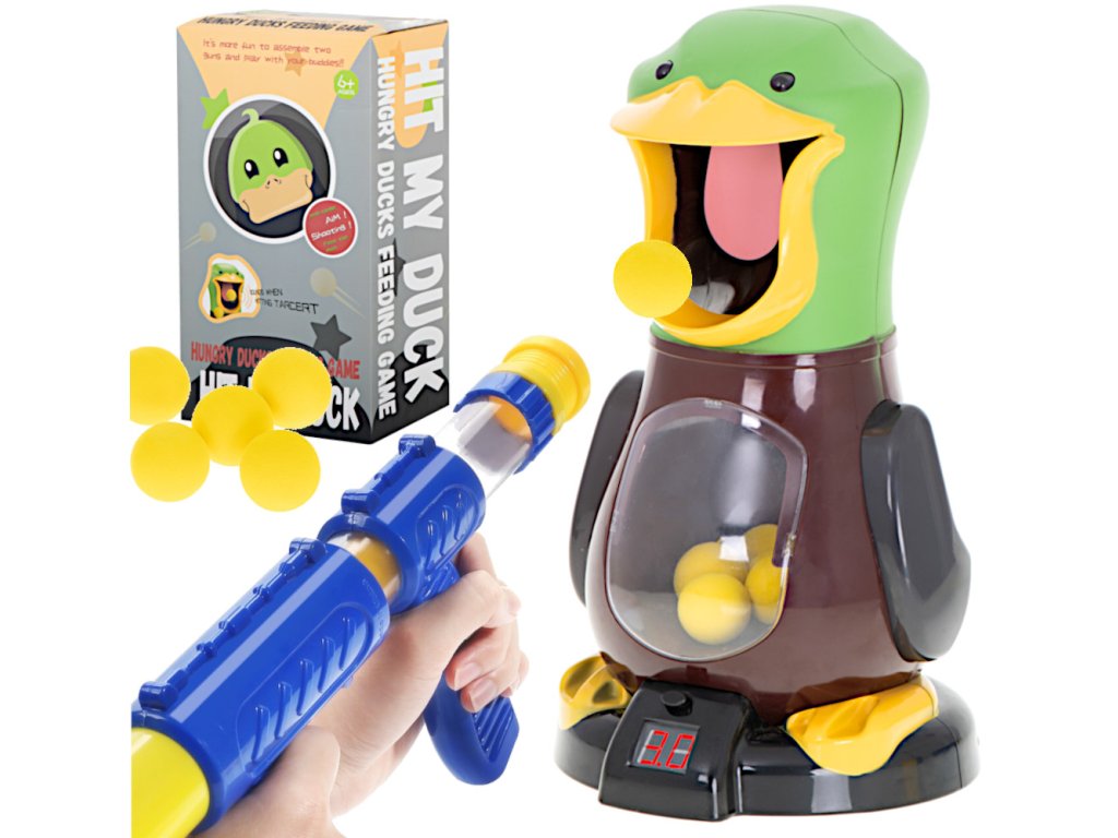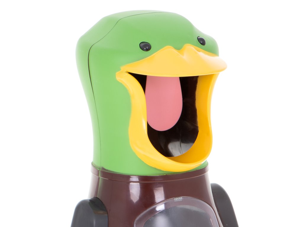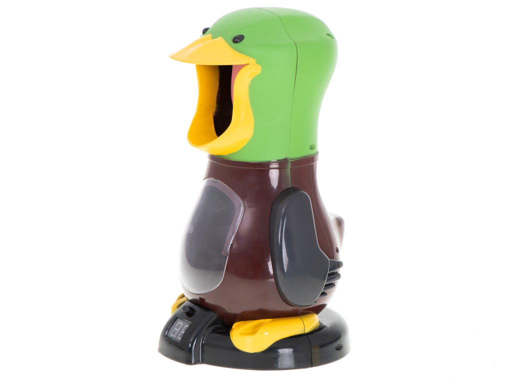Když projektil dopadne na kachní jazyk, vydá hračka charakteristický zvuk.